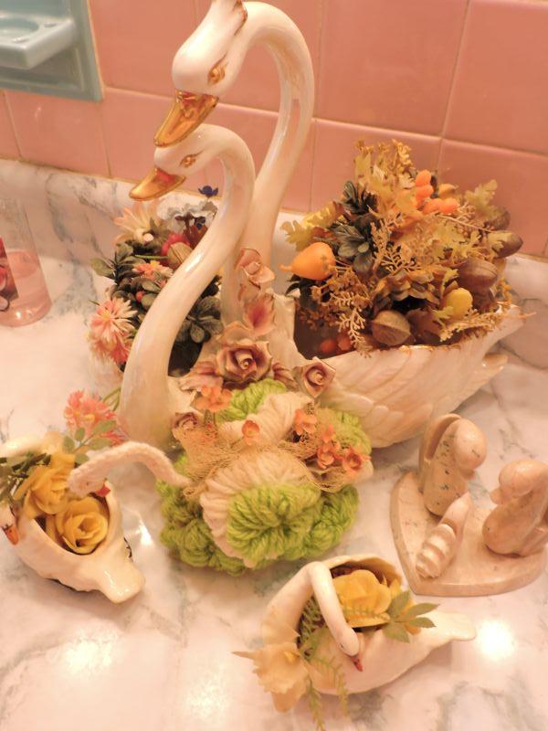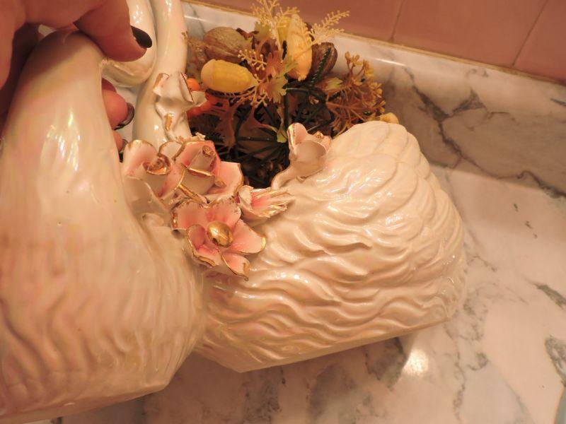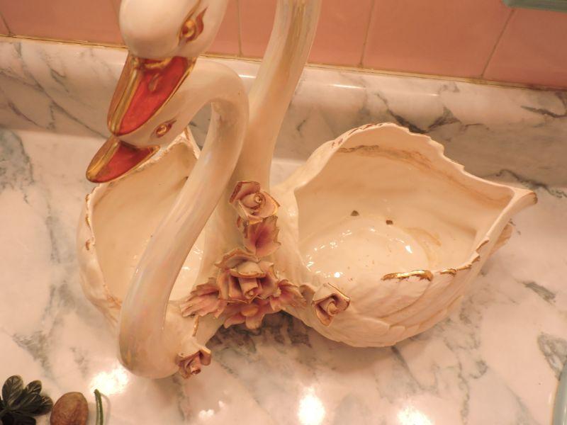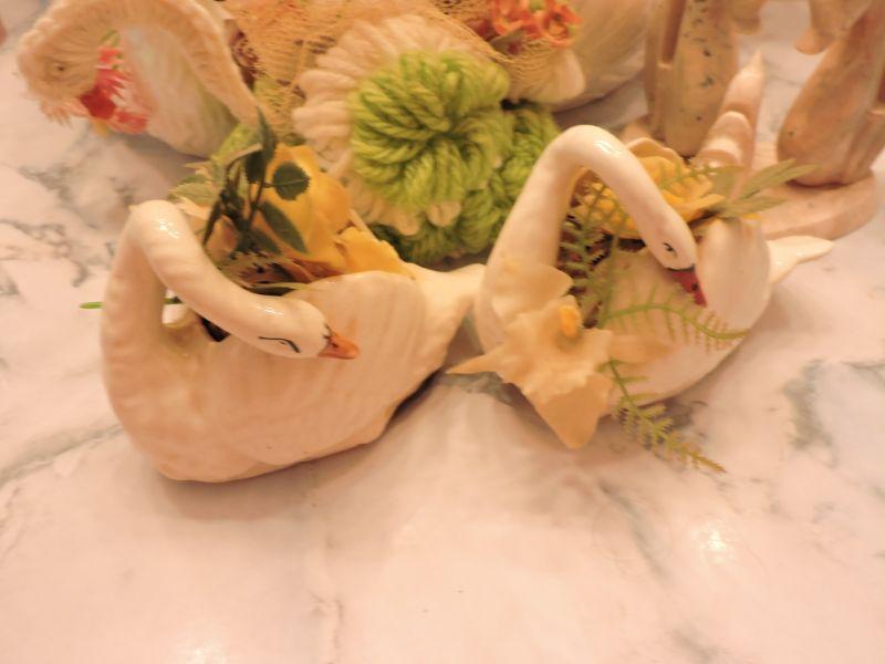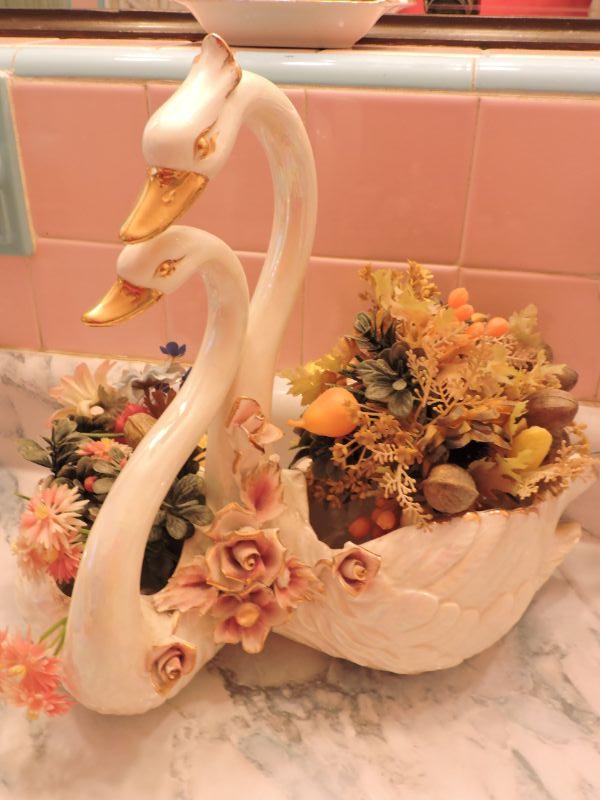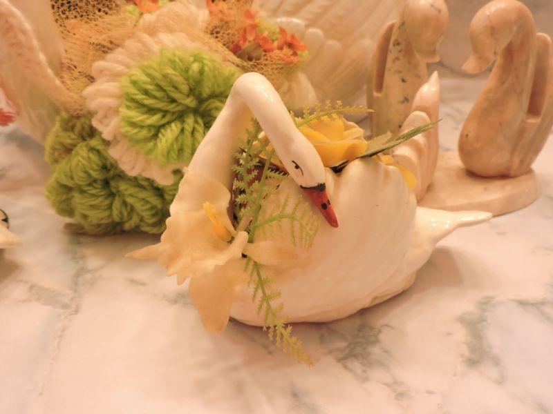Swans for your decor. Faux flowers are included. Please review all photos and read Terms and Conditions before placing a bid. Pick up is Wednesday, November 20 from 4-7pm and Saturday, November 23 from 9am-2pm in Mantua, New Jersey. All sales are final. All sales are as is, where is. Please bring all boxes, tools, and muscle needed to remove your items. Any photo props are not included. All measurements are approximate. Items come from dog-friendly home.