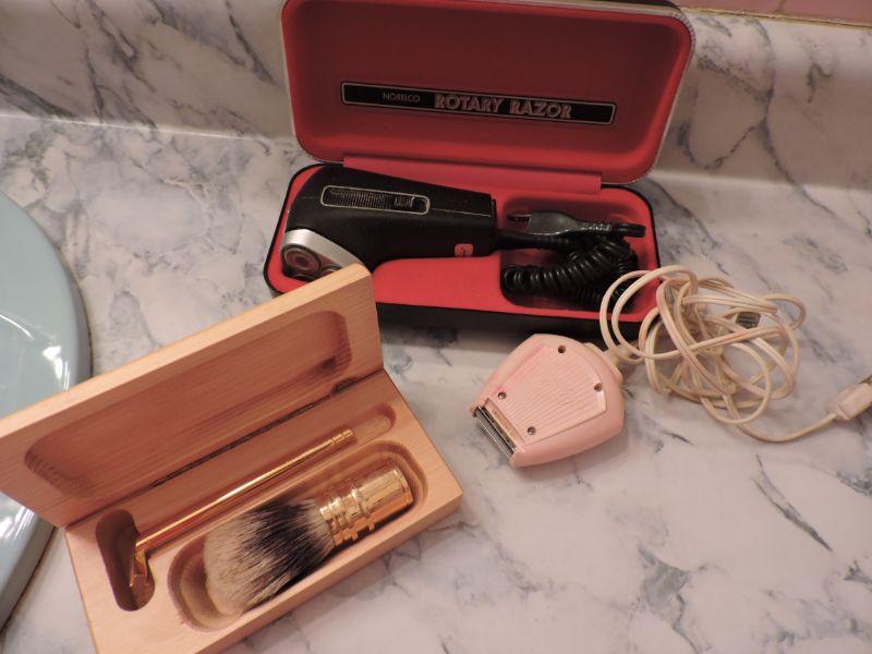 Men's electric Norelco, women's electric Lady Sunbeam, and a safety razor and brush made in Italy. All untested. Please review all photos and read Terms and Conditions before placing a bid. Pick up is Wednesday, November 20 from 4-7pm and Saturday, November 23 from 9am-2pm in Mantua, New Jersey. All sales are final. All sales are as is, where is. Please bring all boxes, tools, and muscle needed to remove your items. Any photo props are not included. All measurements are approximate. Items come from dog-friendly home.