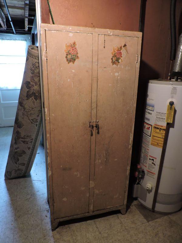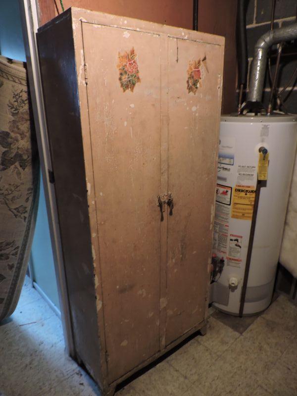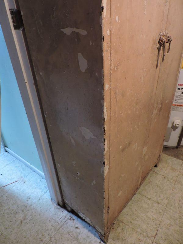 Vintage metal cabinet.. Good condition, just needs cleaning up. Contents not included. Please review all photos and read Terms and Conditions before placing a bid. Pick up is Wednesday, November 20 from 4-7pm and Saturday, November 23 from 9am-2pm in Mantua, New Jersey. All sales are final. All sales are as is, where is. Please bring all boxes, tools, and muscle needed to remove your items. Any photo props are not included. All measurements are approximate. Items come from dog-friendly home.