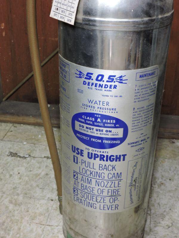 Vintage stainless fire extinguisher. Please review all photos and read Terms and Conditions before placing a bid. Pick up is Wednesday, November 20 from 4-7pm and Saturday, November 23 from 9am-2pm in Mantua, New Jersey. All sales are final. All sales are as is, where is. Please bring all boxes, tools, and muscle needed to remove your items. Any photo props are not included. All measurements are approximate. Items come from dog-friendly home.