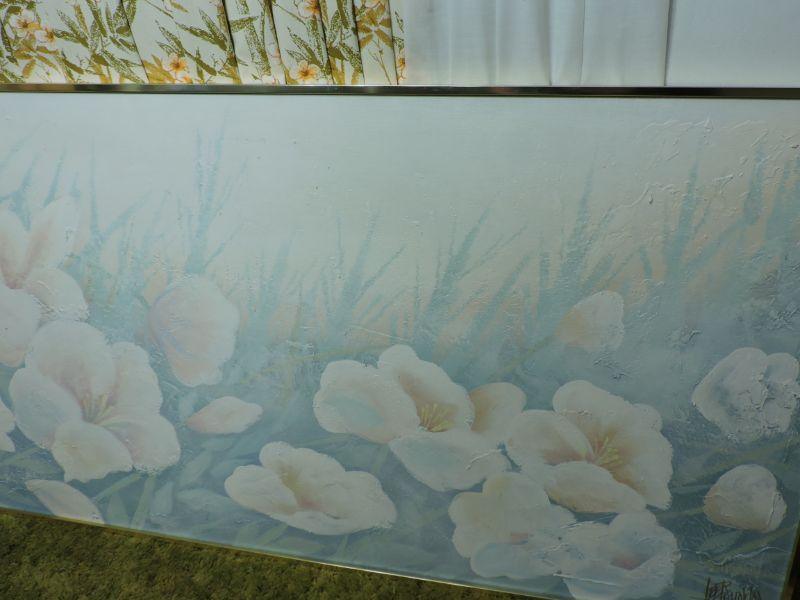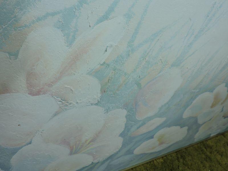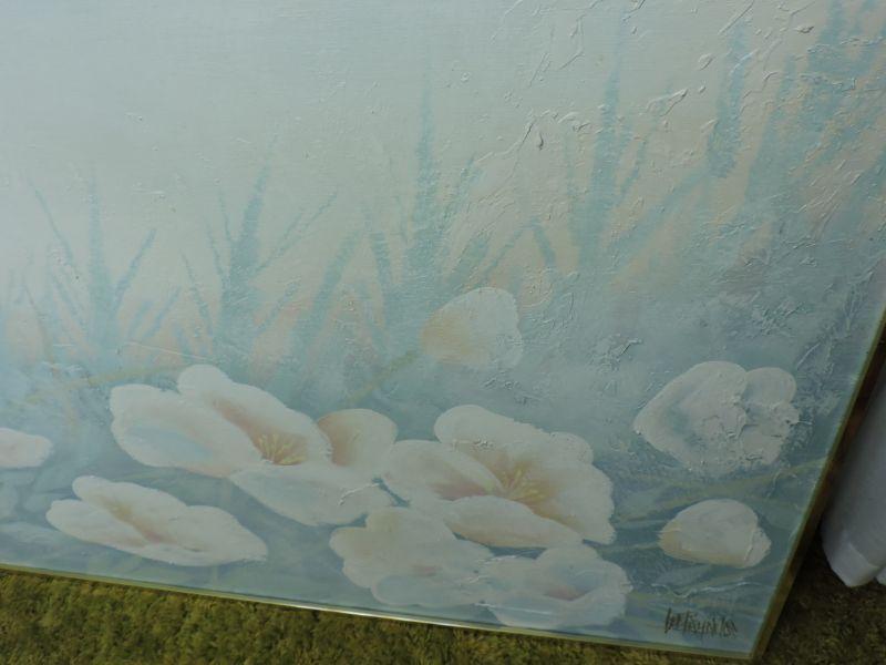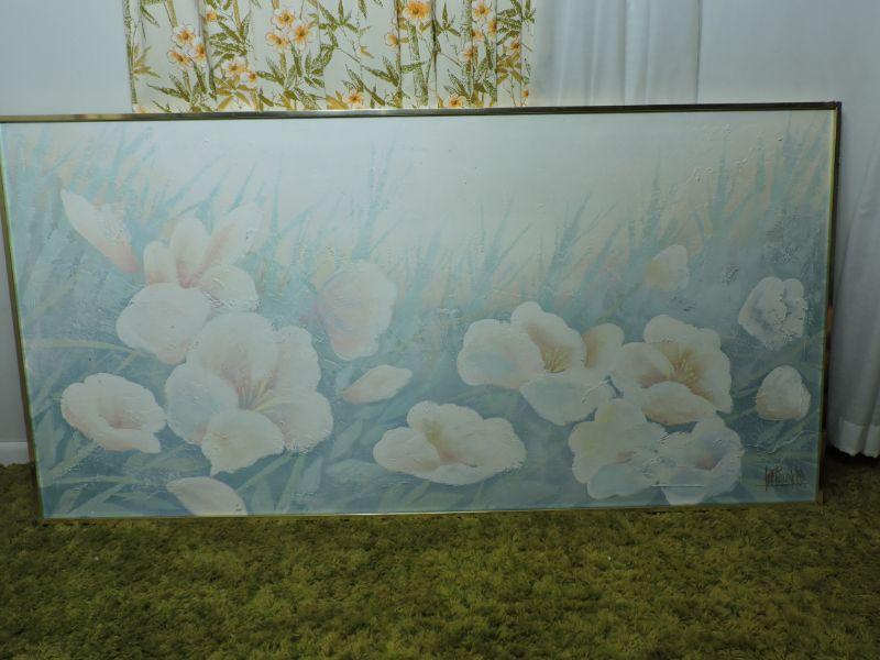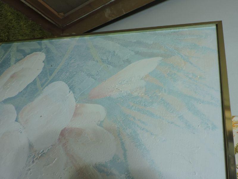Framed and signed painting on canvas. Soft pastel colors. Please review all photos and read Terms and Conditions before placing a bid. Pick up is Wednesday, November 20 from 4-7pm and Saturday, November 23 from 9am-2pm in Mantua, New Jersey. All sales are final. All sales are as is, where is. Please bring all boxes, tools, and muscle needed to remove your items. Any photo props are not included. All measurements are approximate. Items come from dog-friendly home.