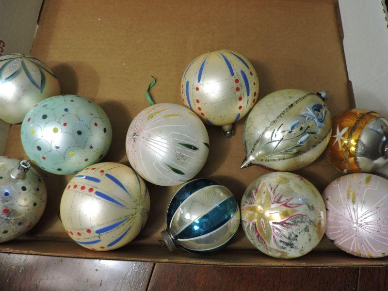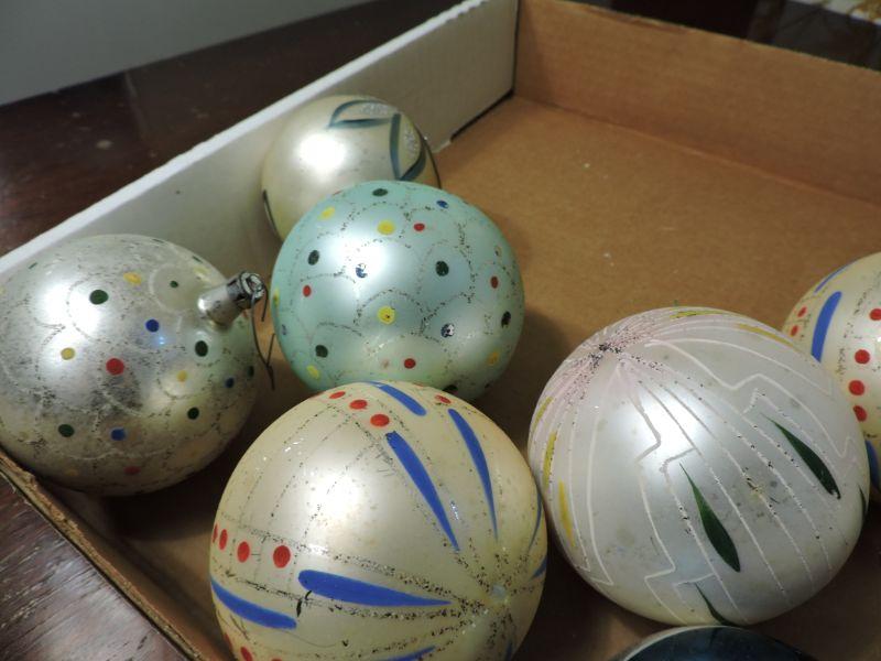 Vintage, glass ornaments. Most of these are oversized. Please review all photos and read Terms and Conditions before placing a bid. Pick up is Wednesday, November 20 from 4-7pm and Saturday, November 23 from 9am-2pm in Mantua, New Jersey. All sales are final. All sales are as is, where is. Please bring all boxes, tools, and muscle needed to remove your items. Any photo props are not included. All measurements are approximate. Items come from dog-friendly home.