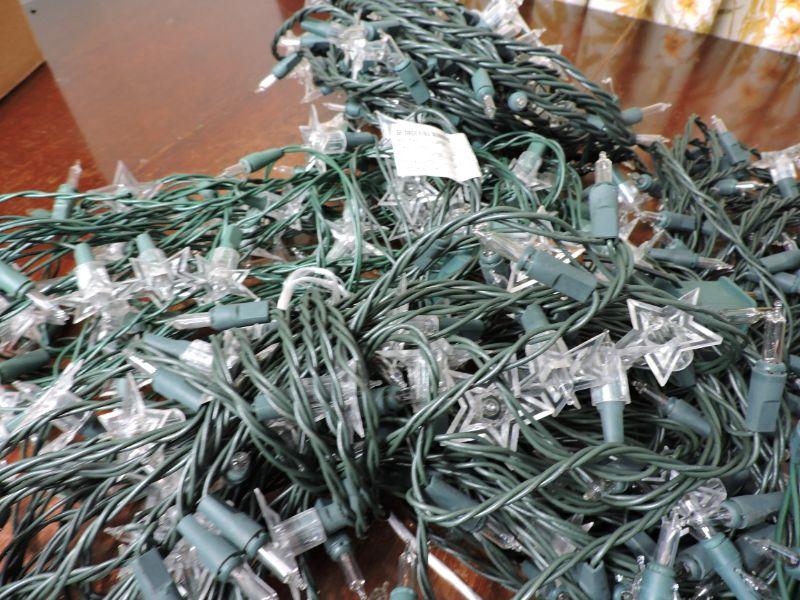Several bundles of lights. Star lights work, others were not tested. Please review all photos and read Terms and Conditions before placing a bid. Pick up is Wednesday, November 20 from 4-7pm and Saturday, November 23 from 9am-2pm in Mantua, New Jersey. All sales are final. All sales are as is, where is. Please bring all boxes, tools, and muscle needed to remove your items. Any photo props are not included. All measurements are approximate. Items come from dog-friendly home.