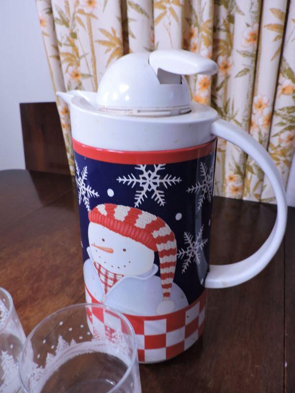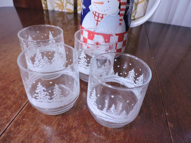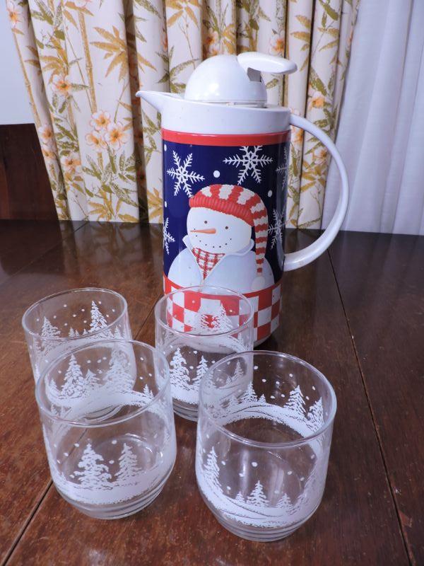 Four glasses with snowy trees and a snowman pitcher with thermos. Please review all photos and read Terms and Conditions before placing a bid. Pick up is Wednesday, November 20 from 4-7pm and Saturday, November 23 from 9am-2pm in Mantua, New Jersey. All sales are final. All sales are as is, where is. Please bring all boxes, tools, and muscle needed to remove your items. Any photo props are not included. All measurements are approximate. Items come from dog-friendly home.