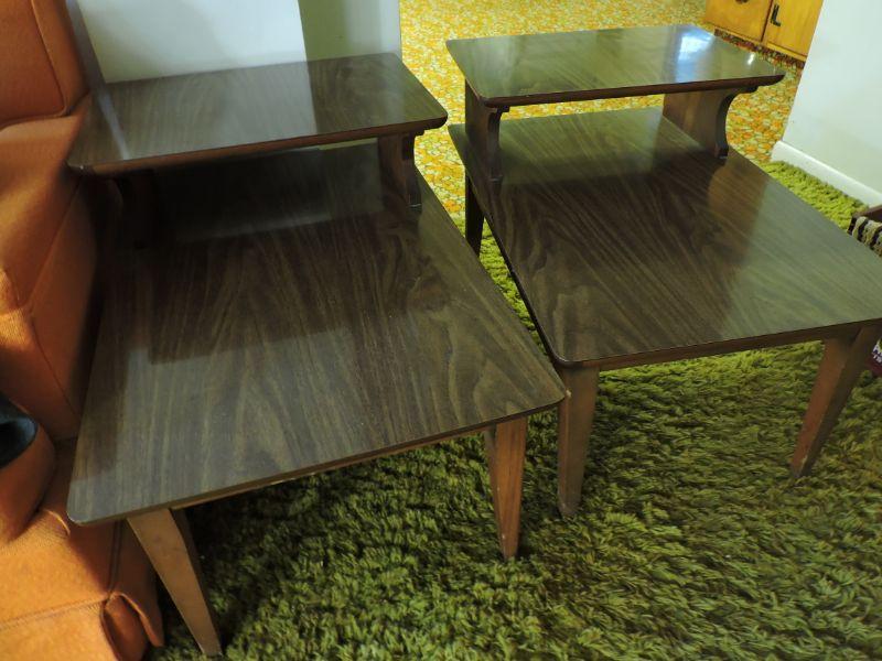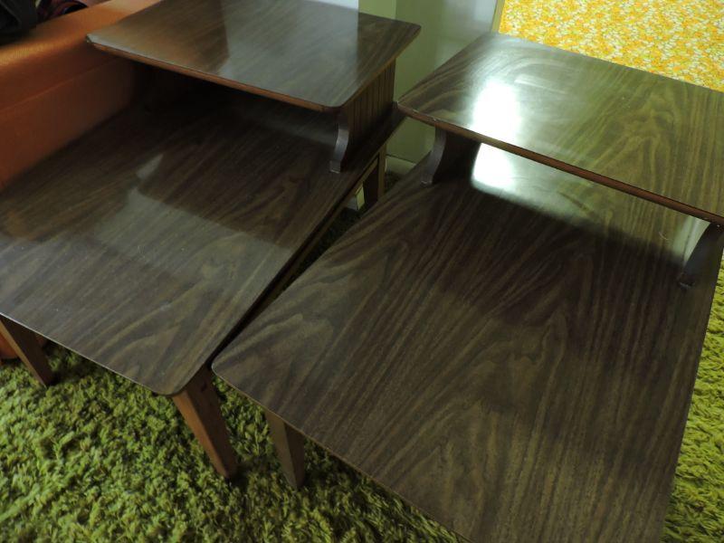Lane wooden tables with formica top. Please review all photos and read Terms and Conditions before placing a bid. Pick up is Wednesday, November 20 from 4-7pm and Saturday, November 23 from 9am-2pm in Mantua, New Jersey. All sales are final. All sales are as is, where is. Please bring all boxes, tools, and muscle needed to remove your items. Any photo props are not included. All measurements are approximate. Items come from dog-friendly home.