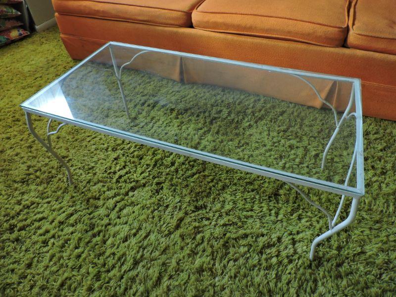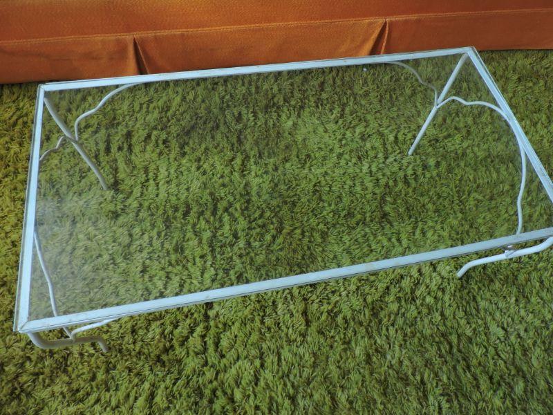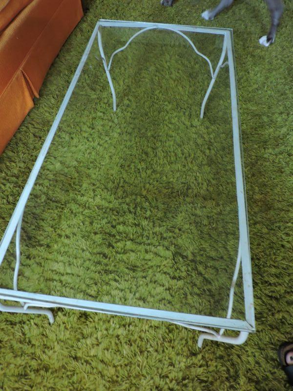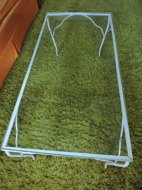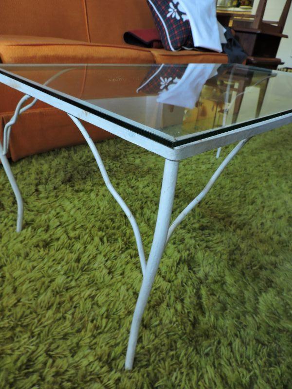 Vintage metal table with glass top. Please review all photos and read Terms and Conditions before placing a bid. Pick up is Wednesday, November 20 from 4-7pm and Saturday, November 23 from 9am-2pm in Mantua, New Jersey. All sales are final. All sales are as is, where is. Please bring all boxes, tools, and muscle needed to remove your items. Any photo props are not included. All measurements are approximate. Items come from dog-friendly home.