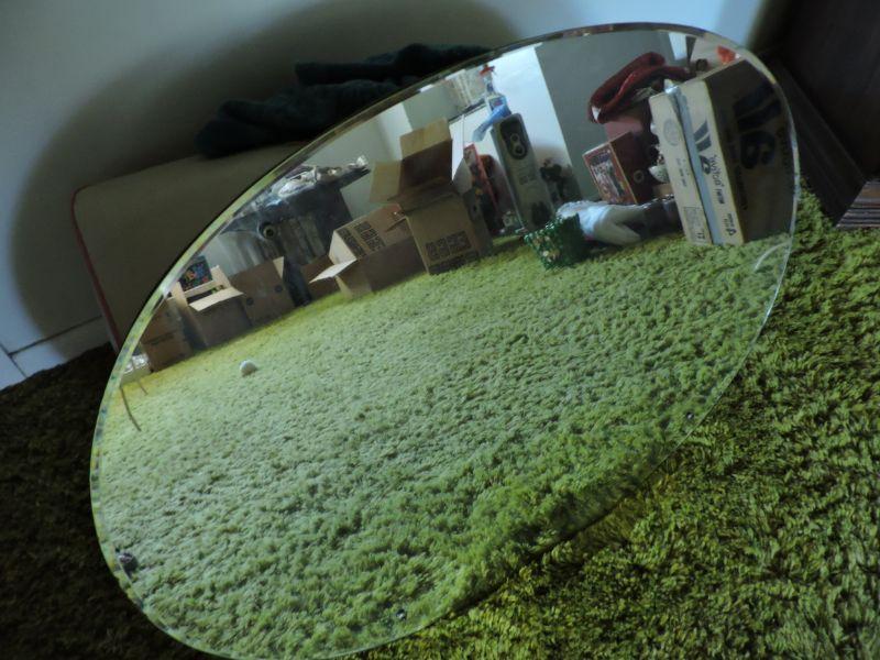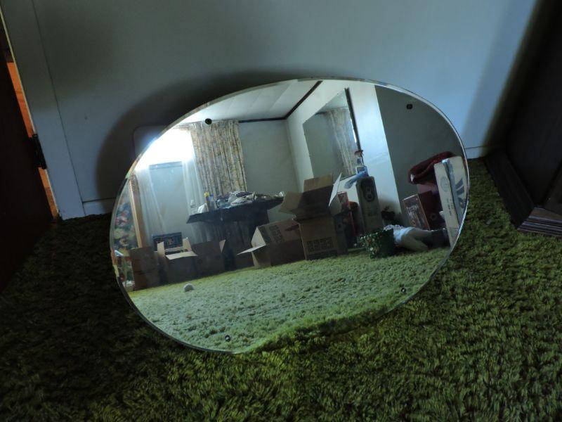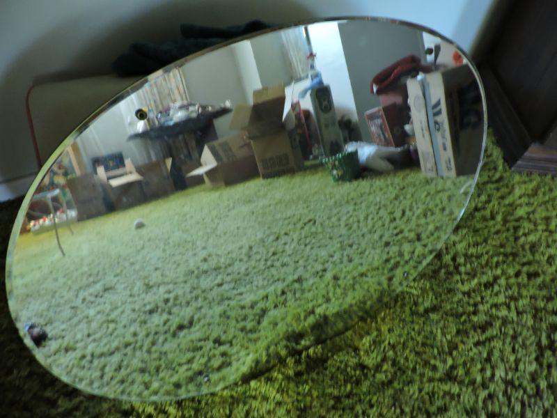 Vintage beveled mirror with hanging attachments. Please review all photos and read Terms and Conditions before placing a bid. Pick up is Wednesday, November 20 from 4-7pm and Saturday, November 23 from 9am-2pm in Mantua, New Jersey. All sales are final. All sales are as is, where is. Please bring all boxes, tools, and muscle needed to remove your items. Any photo props are not included. All measurements are approximate. Items come from dog-friendly home.