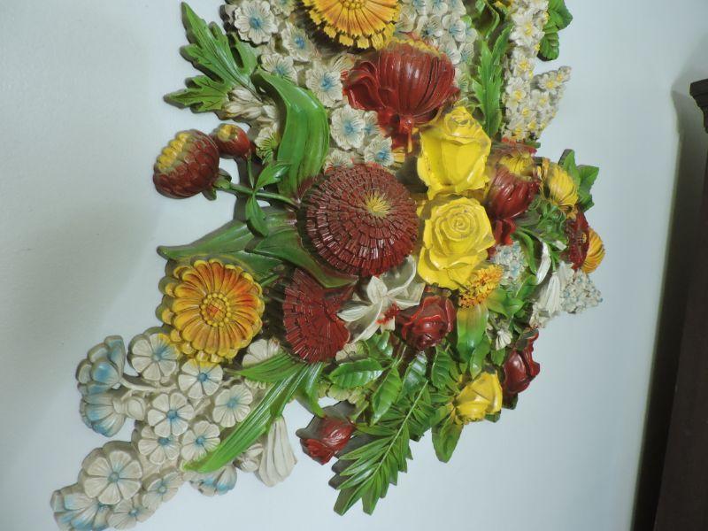 Vintage floral wall hanging. Please review all photos and read Terms and Conditions before placing a bid. Pick up is Wednesday, November 20 from 4-7pm and Saturday, November 23 from 9am-2pm in Mantua, New Jersey. All sales are final. All sales are as is, where is. Please bring all boxes, tools, and muscle needed to remove your items. Any photo props are not included. All measurements are approximate. Items come from dog-friendly home.