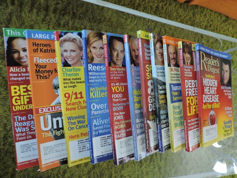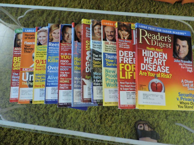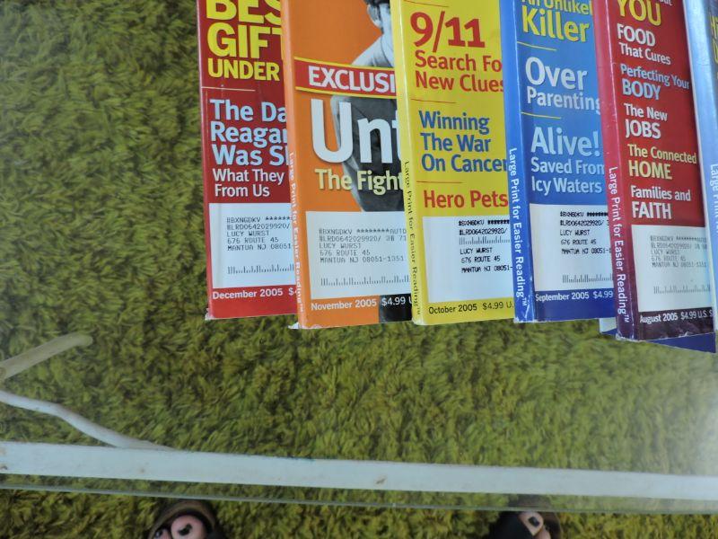 Readers Digest magazines in large print. Please review all photos and read Terms and Conditions before placing a bid. Pick up is Wednesday, November 20 from 4-7pm and Saturday, November 23 from 9am-2pm in Mantua, New Jersey. All sales are final. All sales are as is, where is. Please bring all boxes, tools, and muscle needed to remove your items. Any photo props are not included. All measurements are approximate. Items come from dog-friendly home.