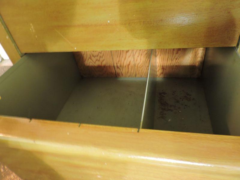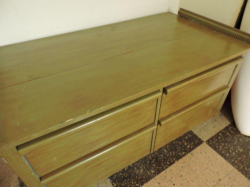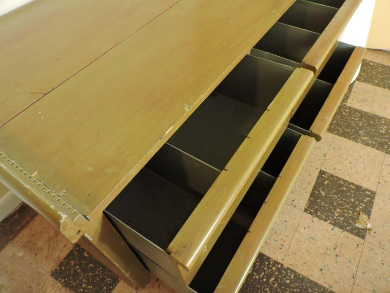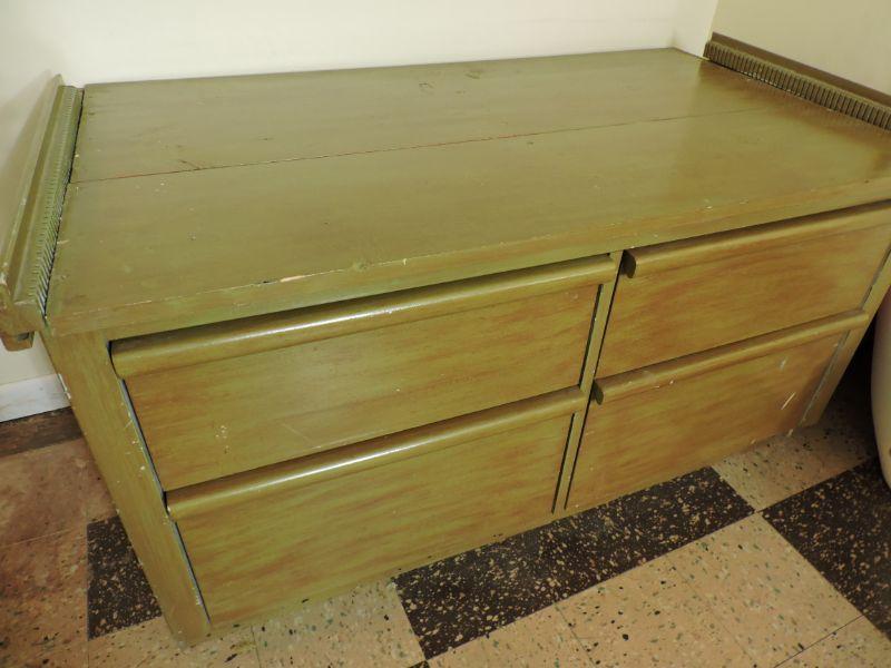 Cabinet with four drawers that are metal with dividers. Scratches and dings. Please review all photos and read Terms and Conditions before placing a bid. Pick up is Wednesday, November 20 from 4-7pm and Saturday, November 23 from 9am-2pm in Mantua, New Jersey. All sales are final. All sales are as is, where is. Please bring all boxes, tools, and muscle needed to remove your items. Any photo props are not included. All measurements are approximate. Items come from dog-friendly home.