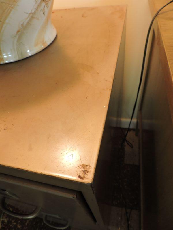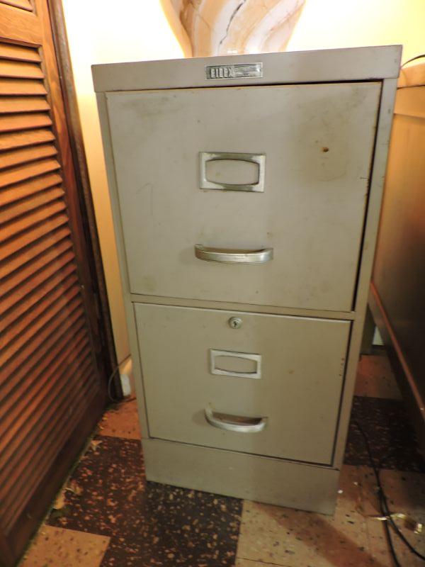 Metal, two drawer file cabinet. Some rust. Please review all photos and read Terms and Conditions before placing a bid. Pick up is Wednesday, November 20 from 4-7pm and Saturday, November 23 from 9am-2pm in Mantua, New Jersey. All sales are final. All sales are as is, where is. Please bring all boxes, tools, and muscle needed to remove your items. Any photo props are not included. All measurements are approximate. Items come from dog-friendly home.