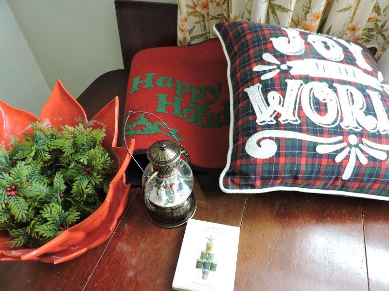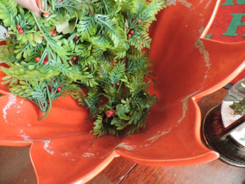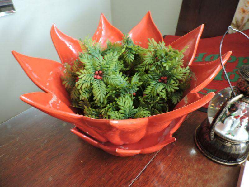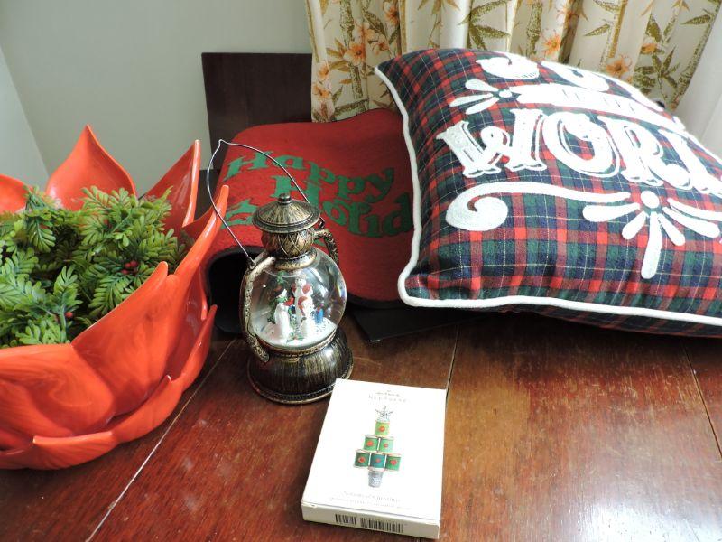 Red poinsettia bowl with faux greens, throw pillow, lantern style snow globe and more. Please review all photos and read Terms and Conditions before placing a bid. Pick up is Wednesday, November 20 from 4-7pm and Saturday, November 23 from 9am-2pm in Mantua, New Jersey. All sales are final. All sales are as is, where is. Please bring all boxes, tools, and muscle needed to remove your items. Any photo props are not included. All measurements are approximate. Items come from dog-friendly home.