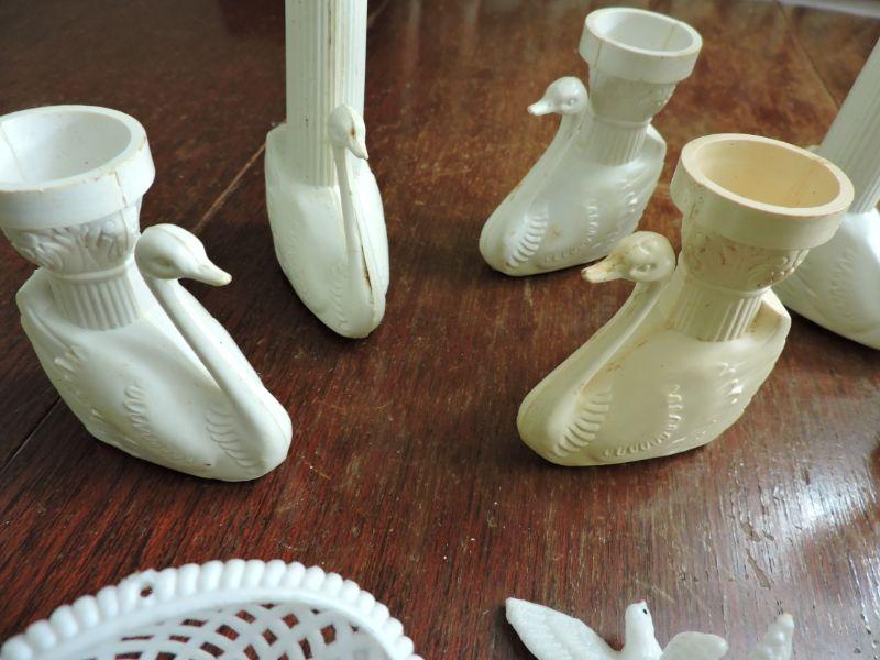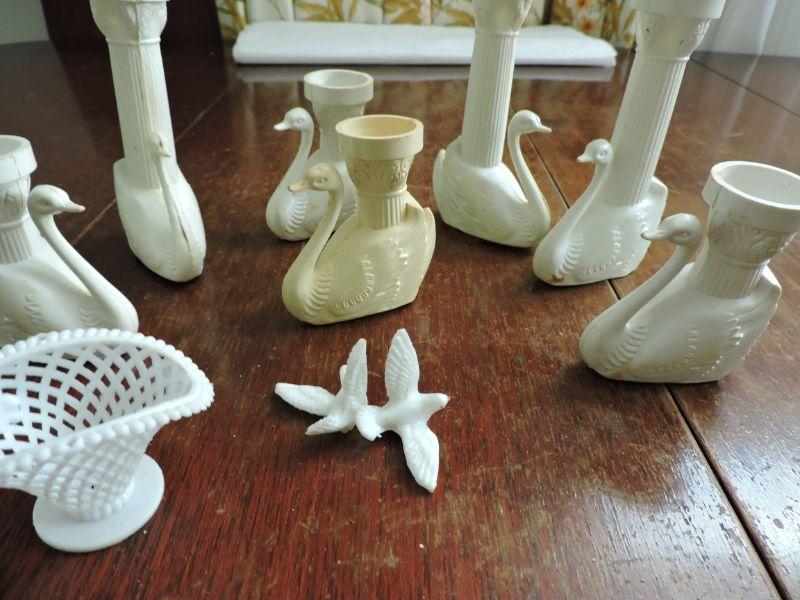 A great collection of swan candle holders.. Also, two birds and a basket included. Please review all photos and read Terms and Conditions before placing a bid. Pick up is Wednesday, November 20 from 4-7pm and Saturday, November 23 from 9am-2pm in Mantua, New Jersey. All sales are final. All sales are as is, where is. Please bring all boxes, tools, and muscle needed to remove your items. Any photo props are not included. All measurements are approximate. Items come from dog-friendly home.