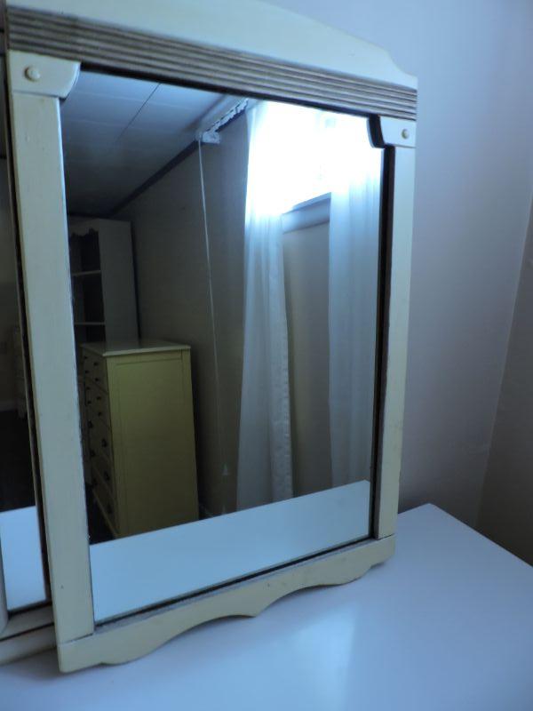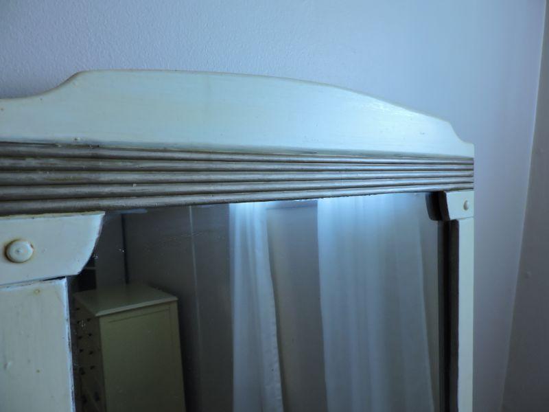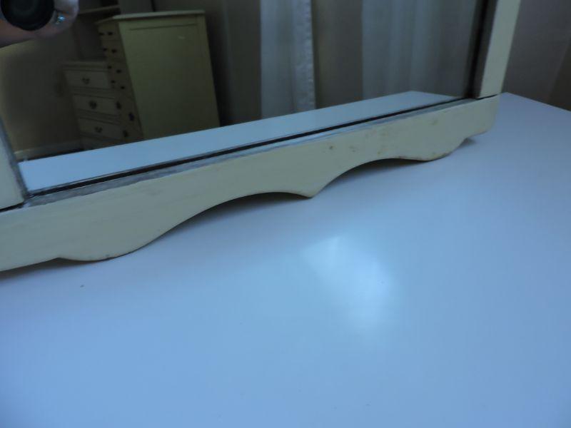 Mirror with wooden frame. Back has paint on it. Please review all photos and read Terms and Conditions before placing a bid. Pick up is Wednesday, November 20 from 4-7pm and Saturday, November 23 from 9am-2pm in Mantua, New Jersey. All sales are final. All sales are as is, where is. Please bring all boxes, tools, and muscle needed to remove your items. Any photo props are not included. All measurements are approximate. Items come from dog-friendly home.