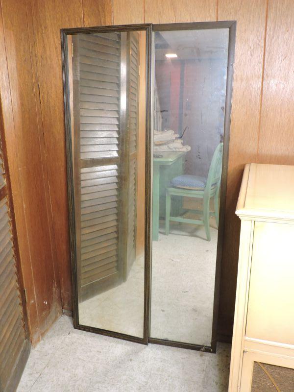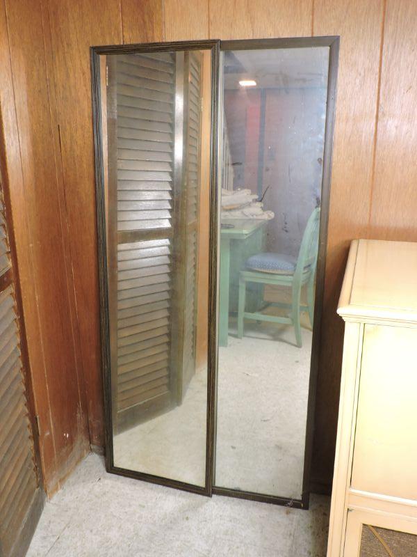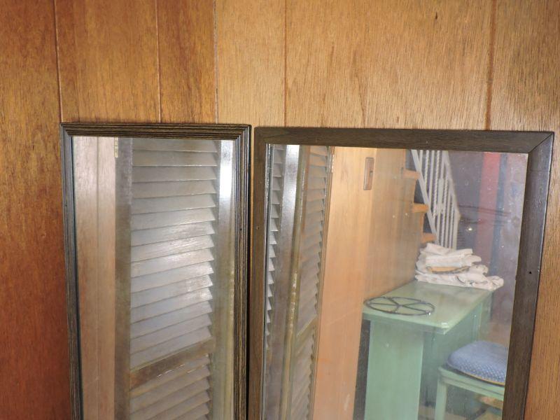 Two mirrors in wooden frames. Can rest on floor on hang up. Please review all photos and read Terms and Conditions before placing a bid. Pick up is Wednesday, November 20 from 4-7pm and Saturday, November 23 from 9am-2pm in Mantua, New Jersey. All sales are final. All sales are as is, where is. Please bring all boxes, tools, and muscle needed to remove your items. Any photo props are not included. All measurements are approximate. Items come from dog-friendly home.