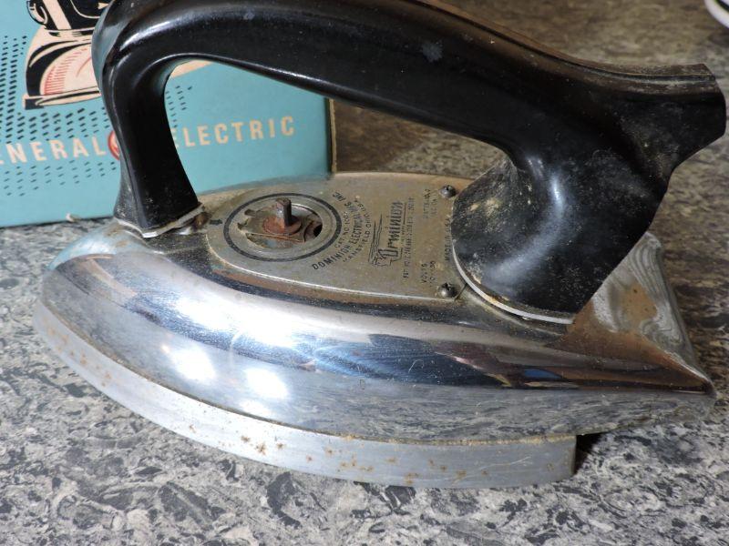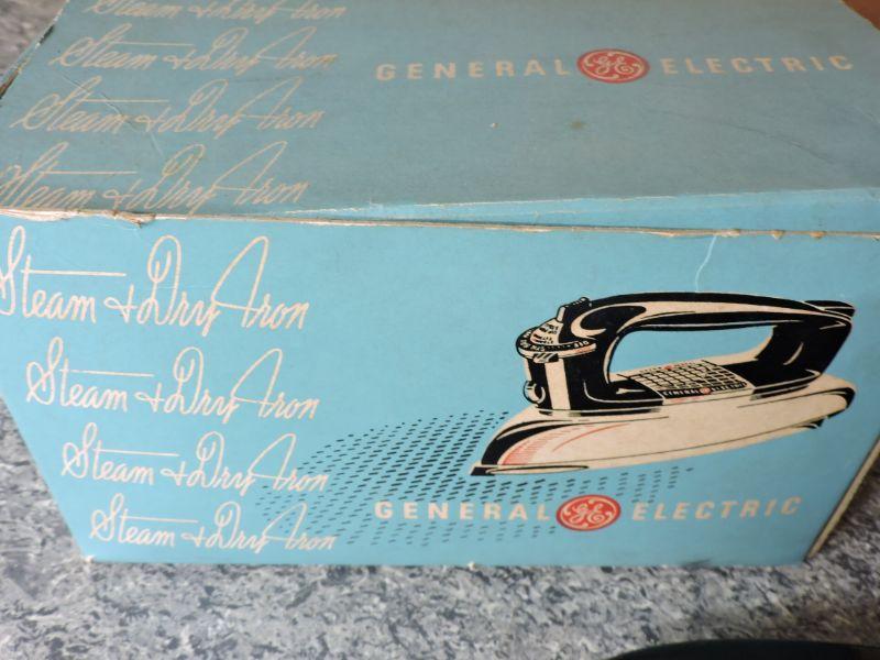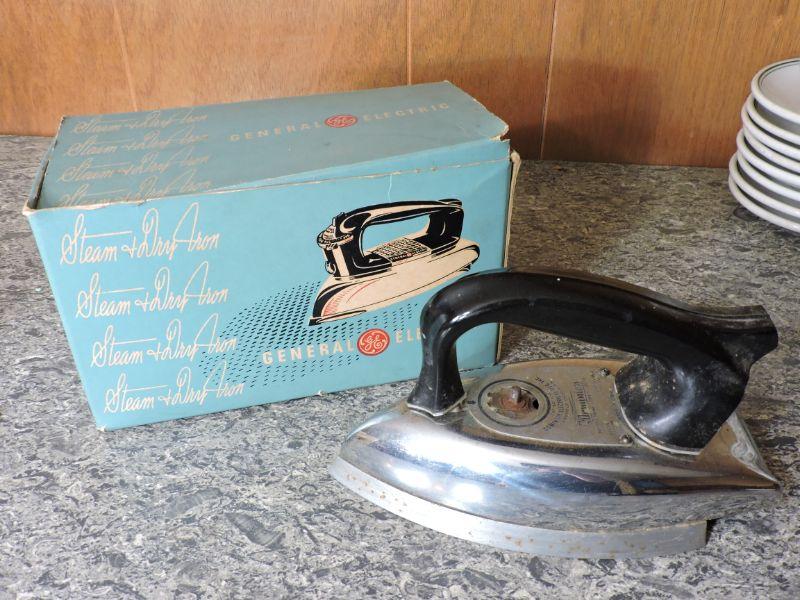 General Electric vintage steam iron with box. Untested. Please review all photos and read Terms and Conditions before placing a bid. Pick up is Wednesday, November 20 from 4-7pm and Saturday, November 23 from 9am-2pm in Mantua, New Jersey. All sales are final. All sales are as is, where is. Please bring all boxes, tools, and muscle needed to remove your items. Any photo props are not included. All measurements are approximate. Items come from dog-friendly home.