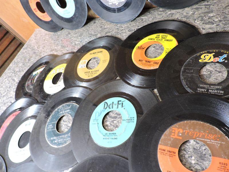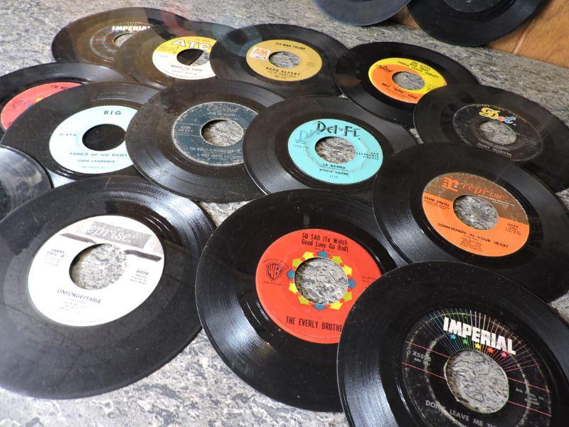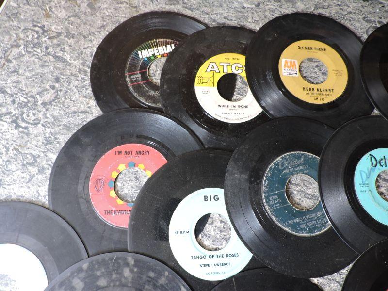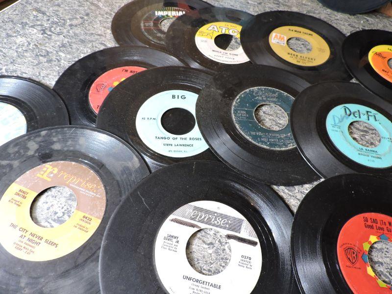 From the 50;s 60's and 70's, vintage "45's". Untested. Please review all photos and read Terms and Conditions before placing a bid. Pick up is Wednesday, November 20 from 4-7pm and Saturday, November 23 from 9am-2pm in Mantua, New Jersey. All sales are final. All sales are as is, where is. Please bring all boxes, tools, and muscle needed to remove your items. Any photo props are not included. All measurements are approximate. Items come from dog-friendly home.