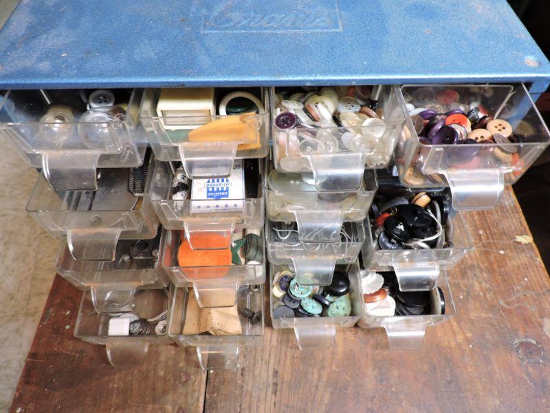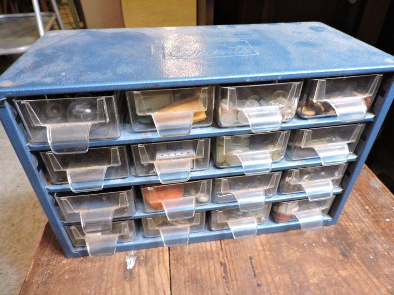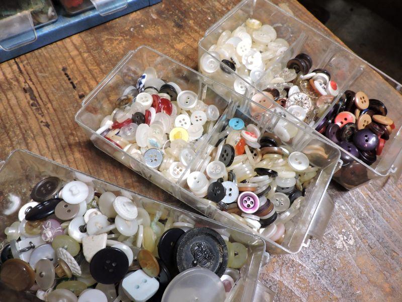 Includes the container that is filled with buttons. Please review all photos and read Terms and Conditions before placing a bid. Pick up is Wednesday, November 20 from 4-7pm and Saturday, November 23 from 9am-2pm in Mantua, New Jersey. All sales are final. All sales are as is, where is. Please bring all boxes, tools, and muscle needed to remove your items. Any photo props are not included. All measurements are approximate. Items come from dog-friendly home.