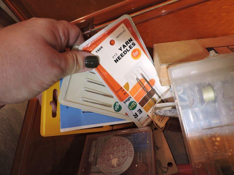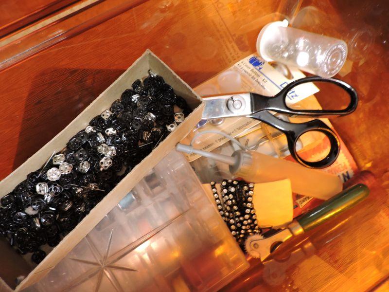 Threads, scissors, snaps, needles, and more Please review all photos and read Terms and Conditions before placing a bid. Pick up is Wednesday, November 20 from 4-7pm and Saturday, November 23 from 9am-2pm in Mantua, New Jersey. All sales are final. All sales are as is, where is. Please bring all boxes, tools, and muscle needed to remove your items. Any photo props are not included. All measurements are approximate. Items come from dog-friendly home.