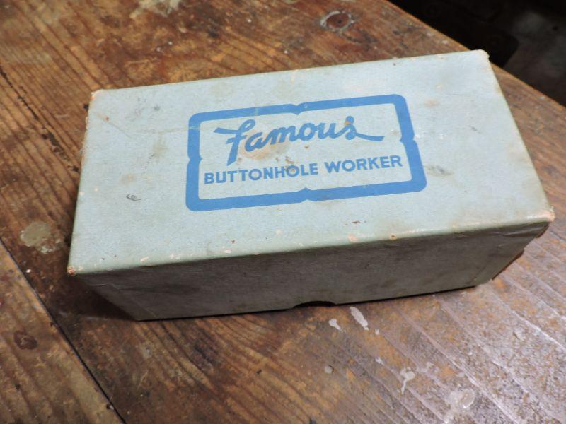 Famous Buttonhole Worker, untested. Please review all photos and read Terms and Conditions before placing a bid. Pick up is Wednesday, November 20 from 4-7pm and Saturday, November 23 from 9am-2pm in Mantua, New Jersey. All sales are final. All sales are as is, where is. Please bring all boxes, tools, and muscle needed to remove your items. Any photo props are not included. All measurements are approximate. Items come from dog-friendly home.