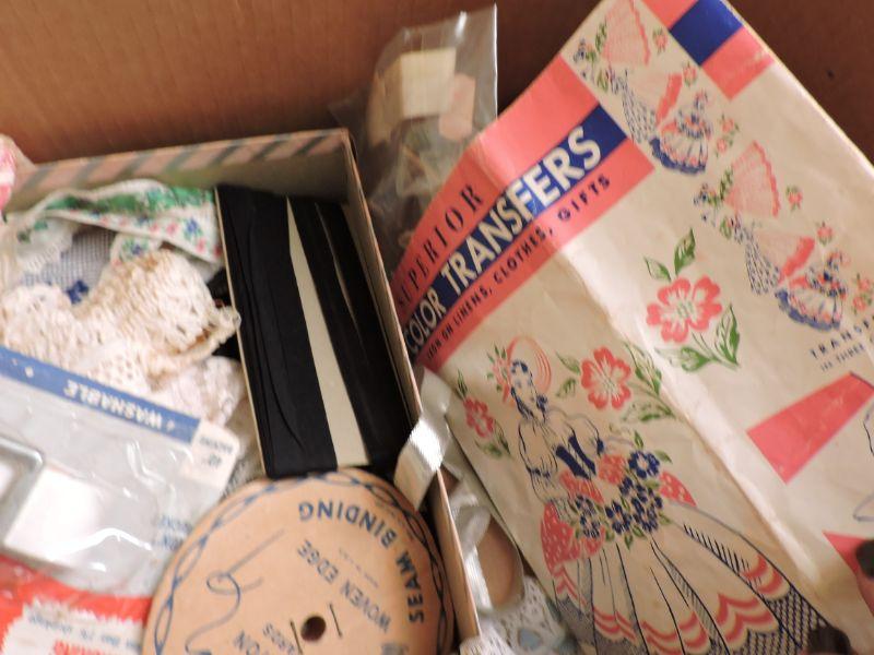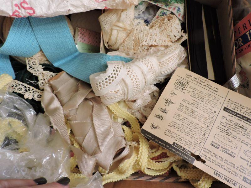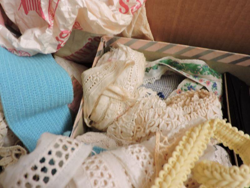 Lace, zippers and other sewing notions. Please review all photos and read Terms and Conditions before placing a bid. Pick up is Wednesday, November 20 from 4-7pm and Saturday, November 23 from 9am-2pm in Mantua, New Jersey. All sales are final. All sales are as is, where is. Please bring all boxes, tools, and muscle needed to remove your items. Any photo props are not included. All measurements are approximate. Items come from dog-friendly home.