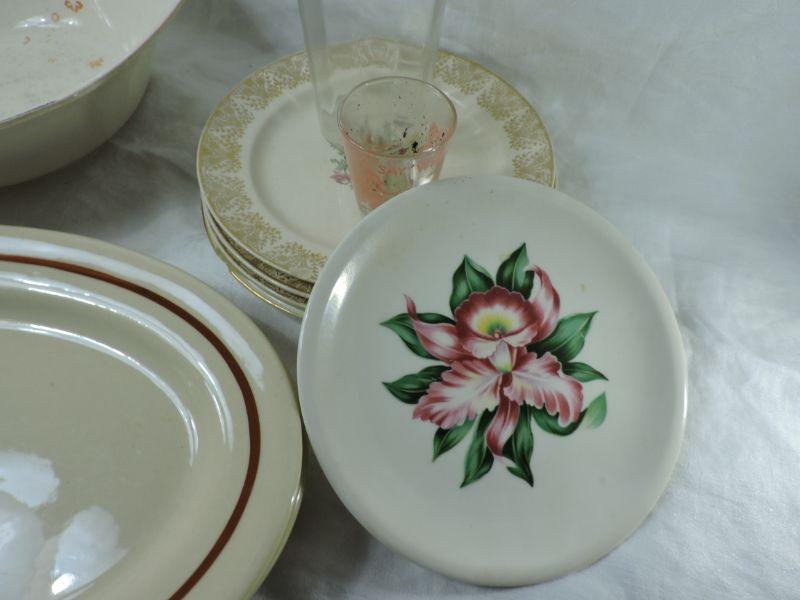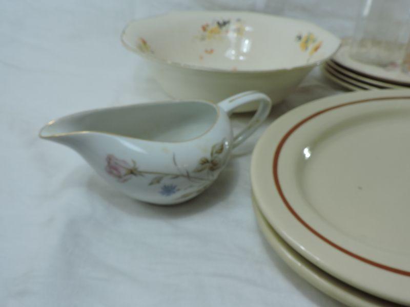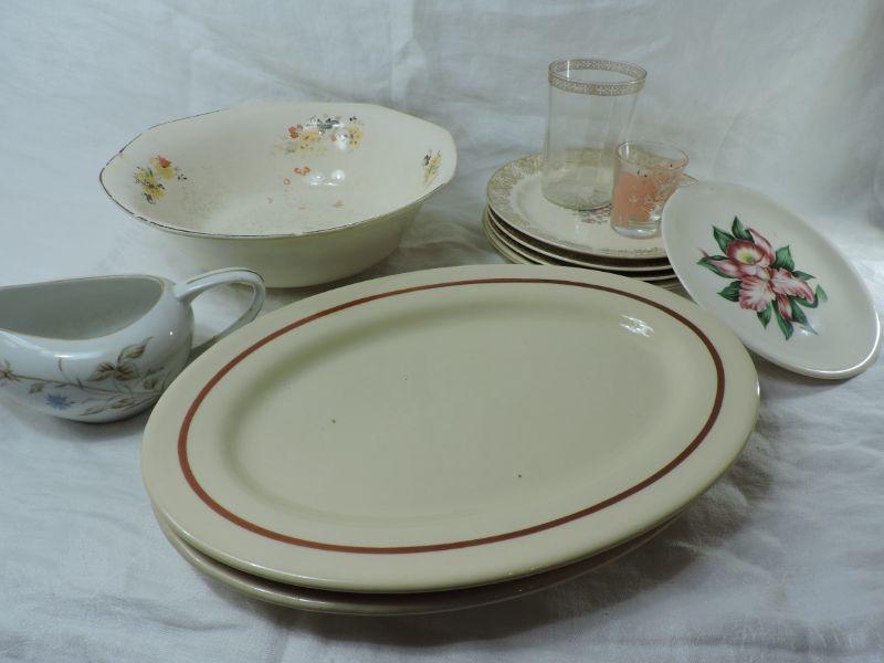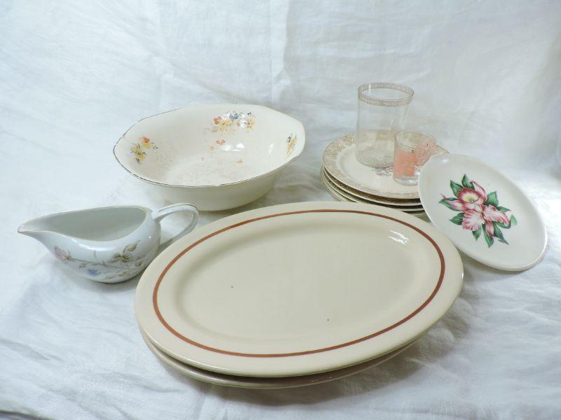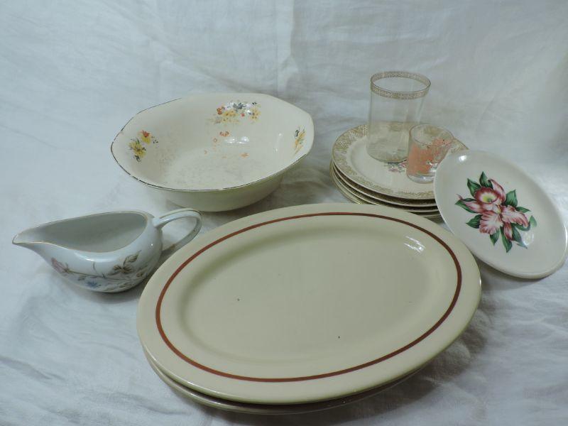 Vintage bowls, plates and glasses. One fine china gravy boat. Please review all photos and read Terms and Conditions before placing a bid. Pick up is Wednesday, November 20 from 4-7pm and Saturday, November 23 from 9am-2pm in Mantua, New Jersey. All sales are final. All sales are as is, where is. Please bring all boxes, tools, and muscle needed to remove your items. Any photo props are not included. All measurements are approximate. Items come from dog-friendly home.