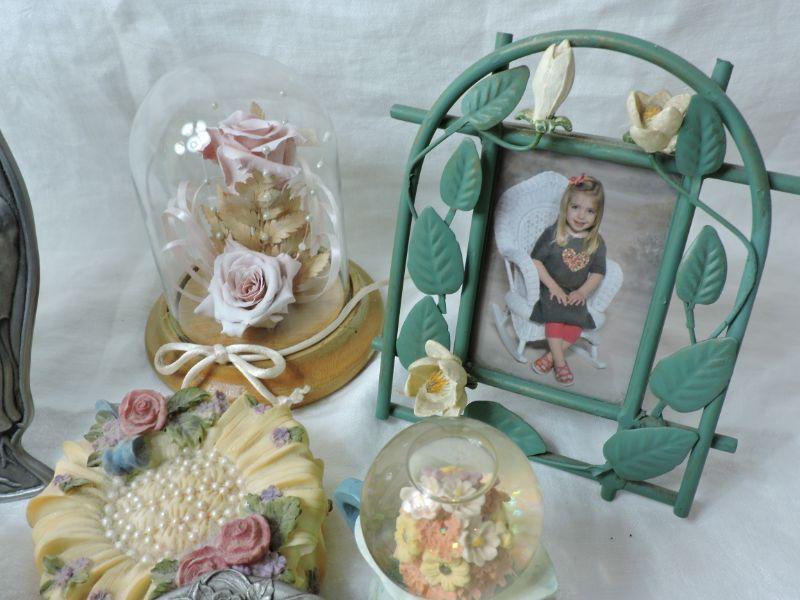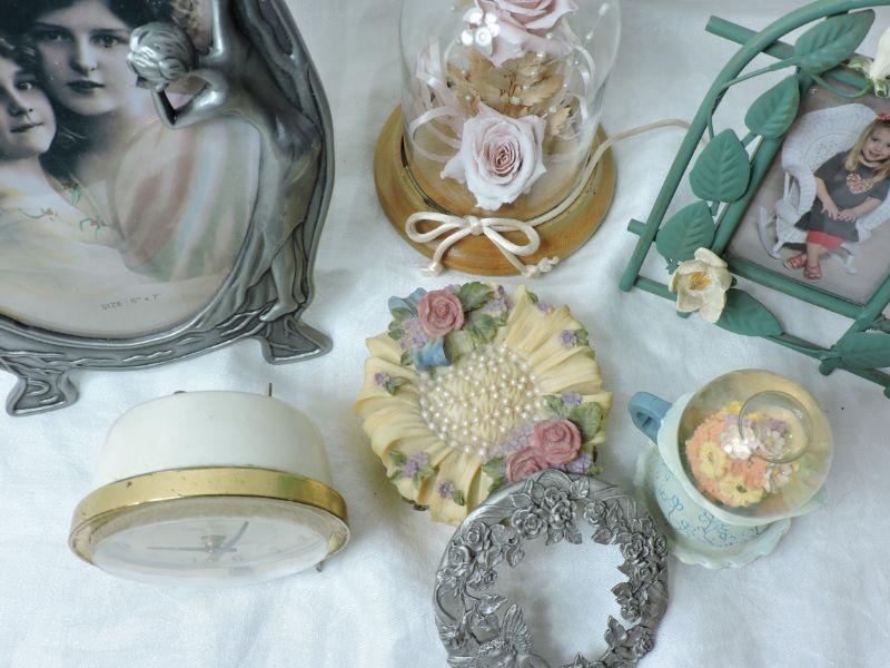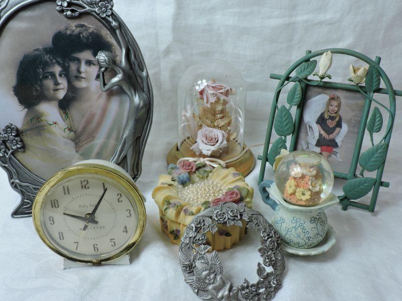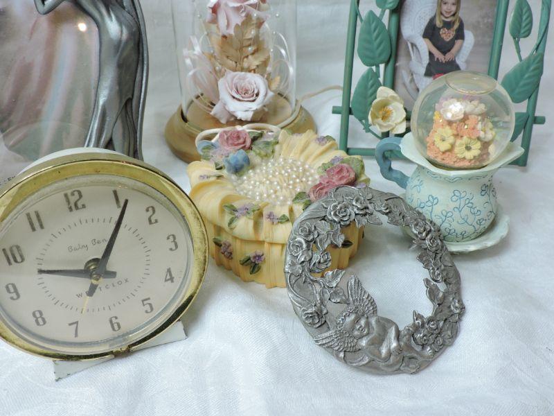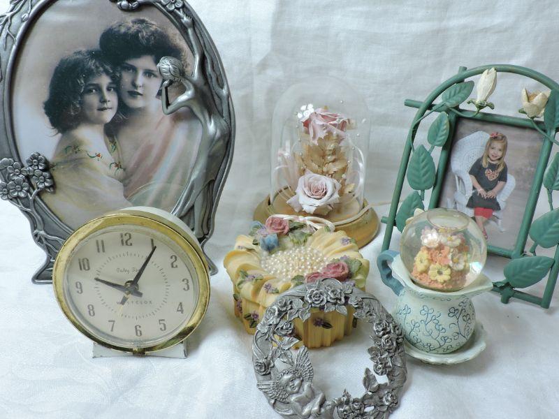 Decorative picture frames, trinket boxes, Baby Ben alarm clock, untested. Please review all photos and read Terms and Conditions before placing a bid. Pick up is Wednesday, November 20 from 4-7pm and Saturday, November 23 from 9am-2pm in Mantua, New Jersey. All sales are final. All sales are as is, where is. Please bring all boxes, tools, and muscle needed to remove your items. Any photo props are not included. All measurements are approximate. Items come from dog-friendly home.