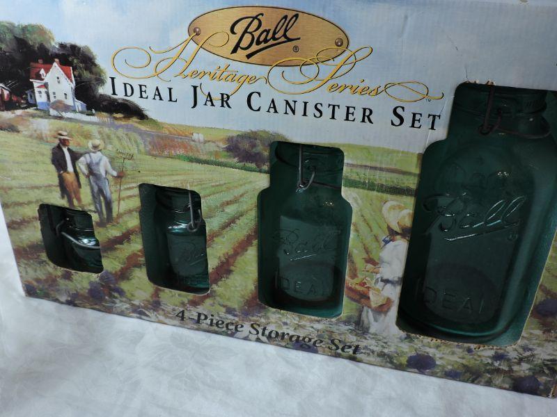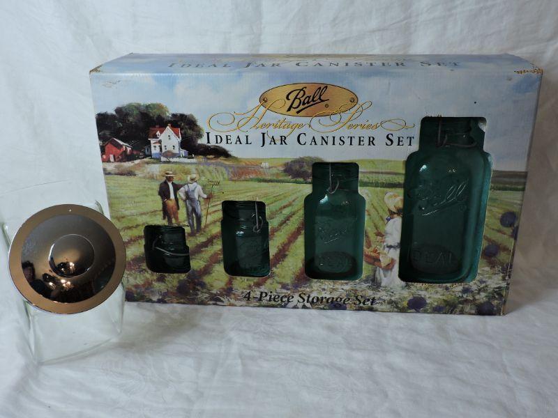 New in box, Ball Jar Canister Set, four sizes. Plus a clear glass canister with stainless lid. Please review all photos and read Terms and Conditions before placing a bid. Pick up is Wednesday, November 20 from 4-7pm and Saturday, November 23 from 9am-2pm in Mantua, New Jersey. All sales are final. All sales are as is, where is. Please bring all boxes, tools, and muscle needed to remove your items. Any photo props are not included. All measurements are approximate. Items come from dog-friendly home.