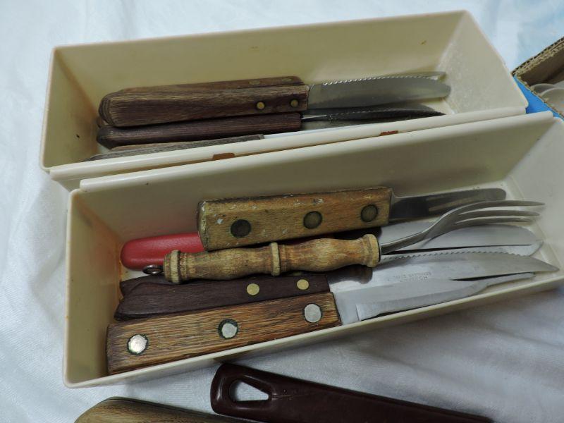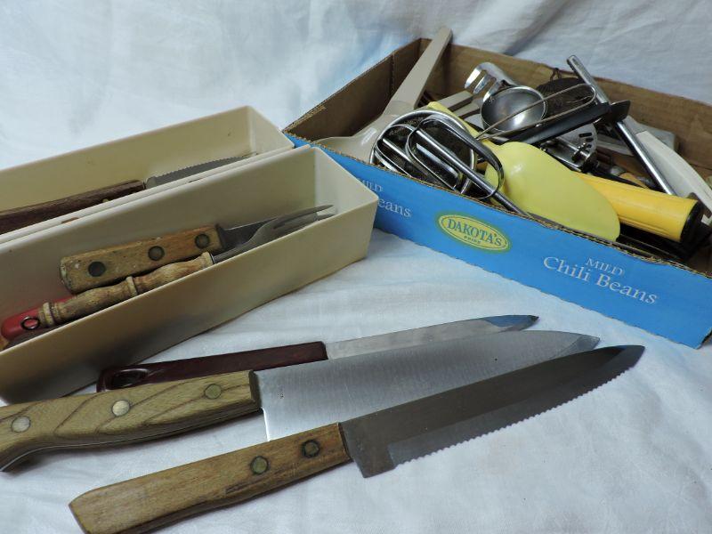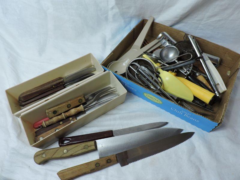 Knives, beaters, ice cream scoops, salad serving set, strainer, and more. Please review all photos and read Terms and Conditions before placing a bid. Pick up is Wednesday, November 20 from 4-7pm and Saturday, November 23 from 9am-2pm in Mantua, New Jersey. All sales are final. All sales are as is, where is. Please bring all boxes, tools, and muscle needed to remove your items. Any photo props are not included. All measurements are approximate. Items come from dog-friendly home.