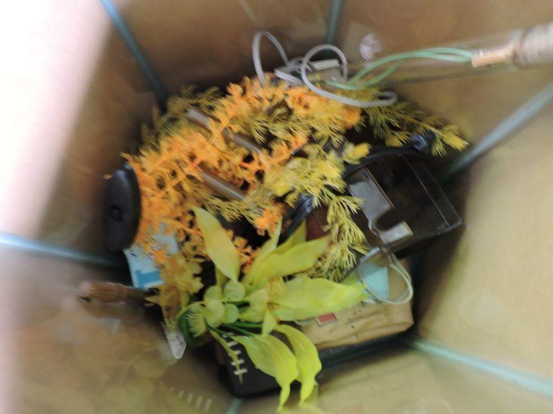 Six sided, glass aquarium with decor. Please review all photos and read Terms and Conditions before placing a bid. Pick up is Wednesday, November 20 from 4-7pm and Saturday, November 23 from 9am-2pm in Mantua, New Jersey. All sales are final. All sales are as is, where is. Please bring all boxes, tools, and muscle needed to remove your items. Any photo props are not included. All measurements are approximate. Items come from dog-friendly home.