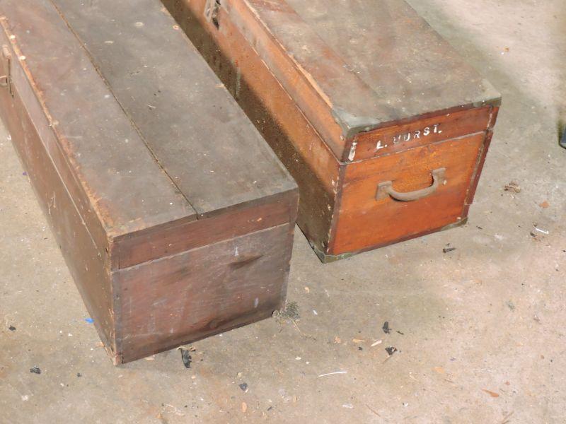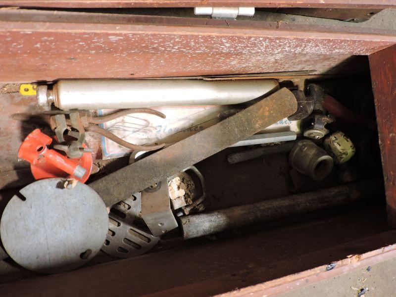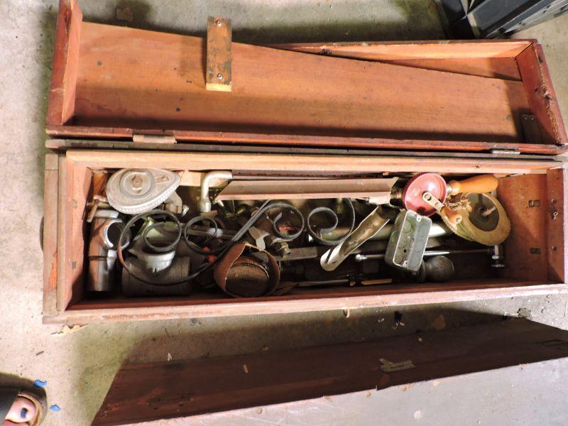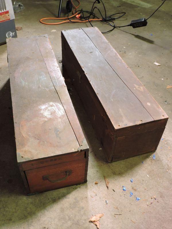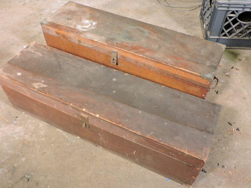 Two vintage tool boxes.. Both have wear and tear, but still very usable. Contents are included. Please review all photos and read Terms and Conditions before placing a bid. Pick up is Wednesday, November 20 from 4-7pm and Saturday, November 23 from 9am-2pm in Mantua, New Jersey. All sales are final. All sales are as is, where is. Please bring all boxes, tools, and muscle needed to remove your items. Any photo props are not included. All measurements are approximate. Items come from dog-friendly home.