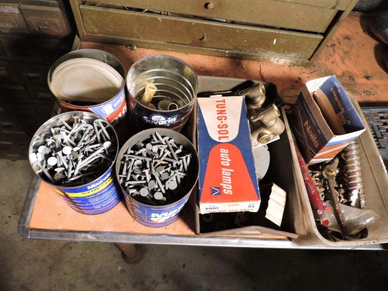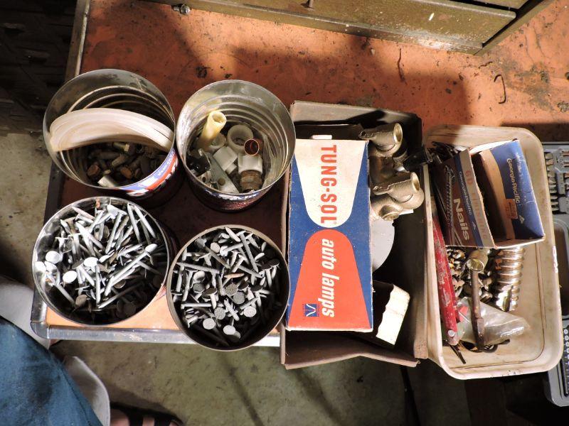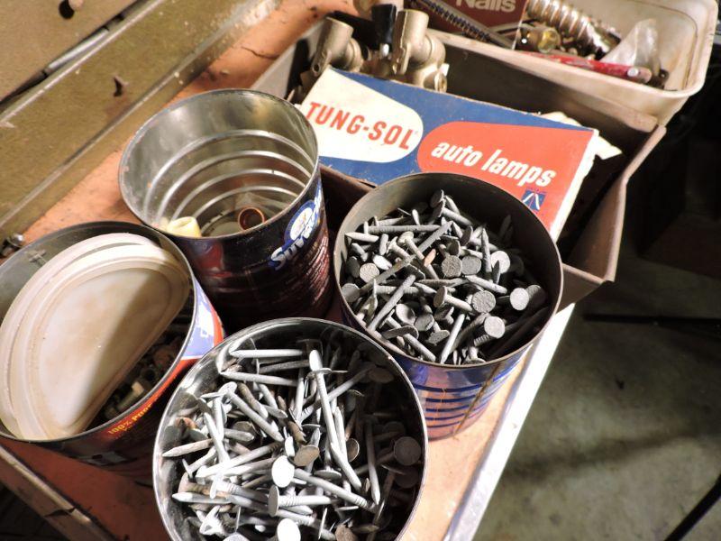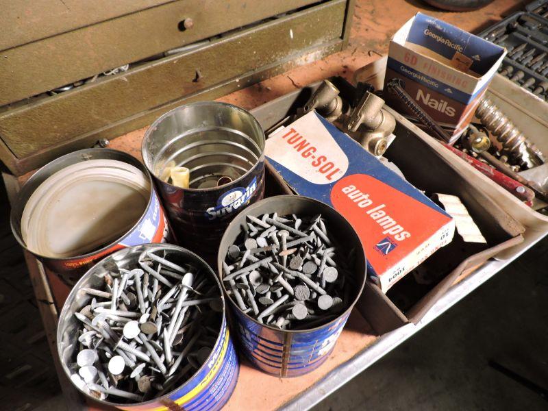 Coffee cans filled with nails and more. Please review all photos and read Terms and Conditions before placing a bid. Pick up is Wednesday, November 20 from 4-7pm and Saturday, November 23 from 9am-2pm in Mantua, New Jersey. All sales are final. All sales are as is, where is. Please bring all boxes, tools, and muscle needed to remove your items. Any photo props are not included. All measurements are approximate. Items come from dog-friendly home.