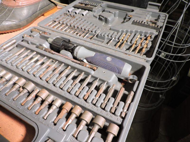 Sockets, drills and screw driver. Untested. Please review all photos and read Terms and Conditions before placing a bid. Pick up is Wednesday, November 20 from 4-7pm and Saturday, November 23 from 9am-2pm in Mantua, New Jersey. All sales are final. All sales are as is, where is. Please bring all boxes, tools, and muscle needed to remove your items. Any photo props are not included. All measurements are approximate. Items come from dog-friendly home.