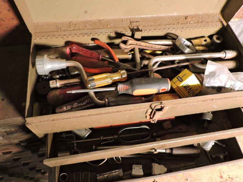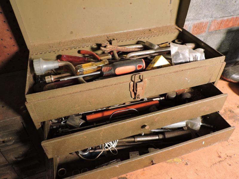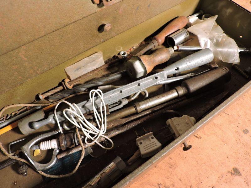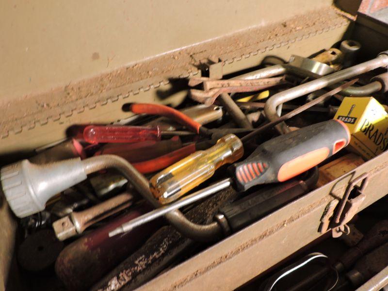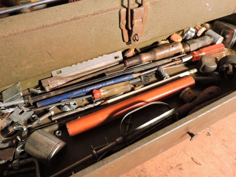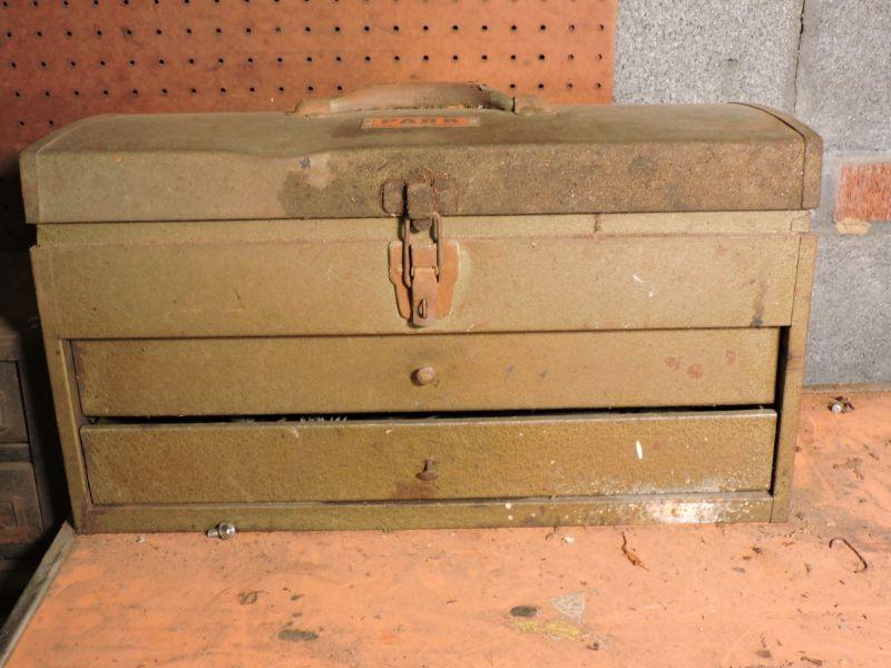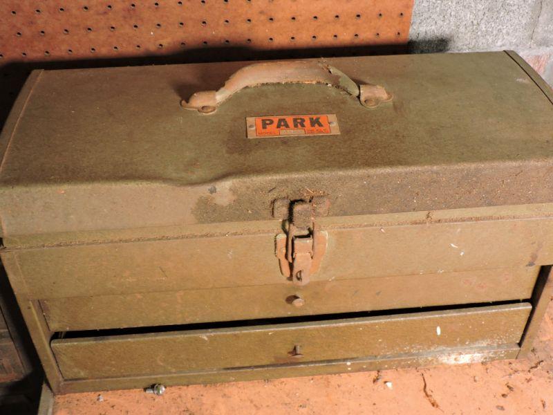Vintage Park tool box has dent on top. All contents are included. Please review all photos and read Terms and Conditions before placing a bid. Pick up is Wednesday, November 20 from 4-7pm and Saturday, November 23 from 9am-2pm in Mantua, New Jersey. All sales are final. All sales are as is, where is. Please bring all boxes, tools, and muscle needed to remove your items. Any photo props are not included. All measurements are approximate. Items come from dog-friendly home.