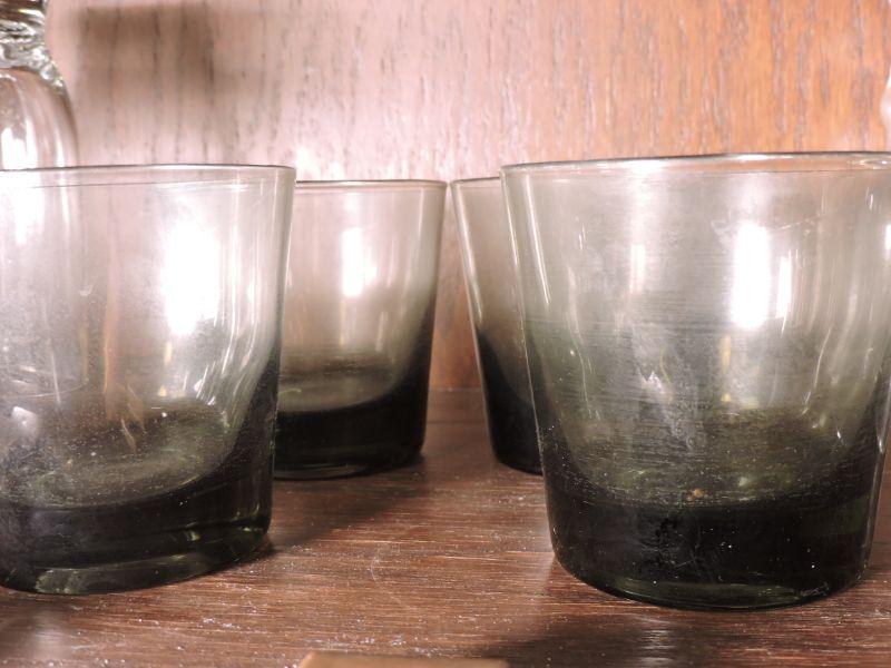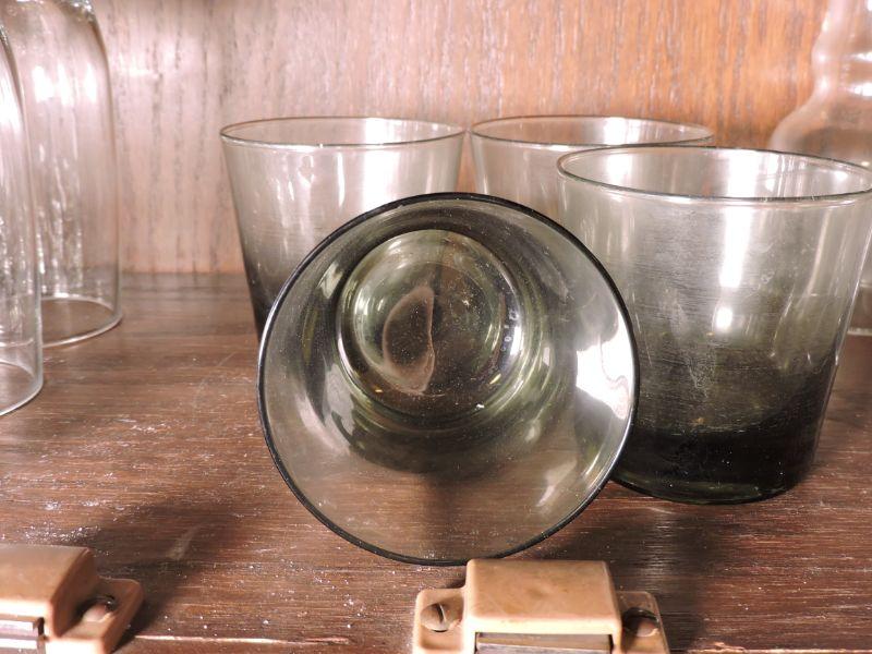 Four smokey glass juice glasses, no chips. Please review all photos and read Terms and Conditions before placing a bid. Pick up is Wednesday, November 20 from 4-7pm and Saturday, November 23 from 9am-2pm in Mantua, New Jersey. All sales are final. All sales are as is, where is. Please bring all boxes, tools, and muscle needed to remove your items. Any photo props are not included. All measurements are approximate. Items come from dog-friendly home.