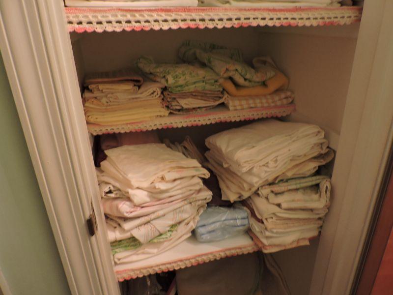 Contents of closet includes sheets, towels, and more. Please review all photos and read Terms and Conditions before placing a bid. Pick up is Wednesday, November 20 from 4-7pm and Saturday, November 23 from 9am-2pm in Mantua, New Jersey. All sales are final. All sales are as is, where is. Please bring all boxes, tools, and muscle needed to remove your items. Any photo props are not included. All measurements are approximate. Items come from dog-friendly home.