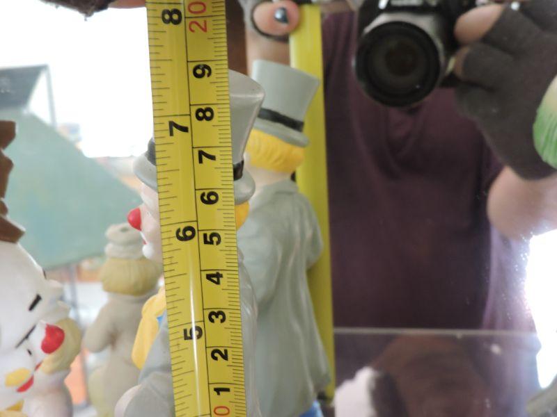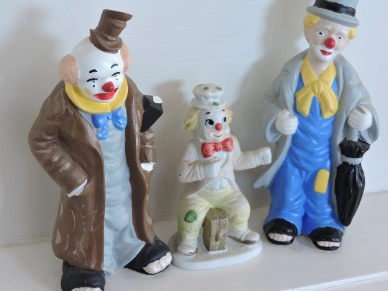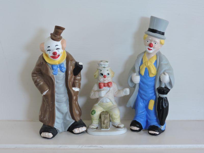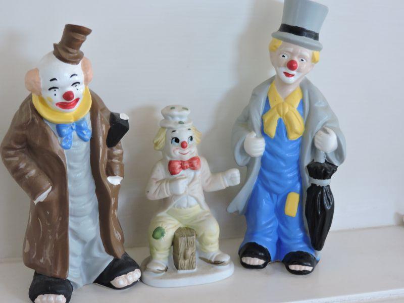 Three ceramic clowns. No chips. Please read Terms and Conditions before placing a bid. Pick up is Saturday, November 30 from 9am to 3 pm in Bridgeton, NJ. All sales are final. All sales are as is, where is. Please review all photos. Any props included in photos are not included in listing. All measurements are approximate.
