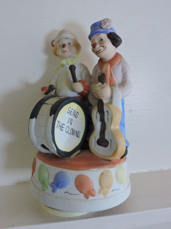 Music box clowns. Works, but slow. Please read Terms and Conditions before placing a bid. Pick up is Saturday, November 30 from 9am to 3 pm in Bridgeton, NJ. All sales are final. All sales are as is, where is. Please review all photos. Any props included in photos are not included in listing. All measurements are approximate.