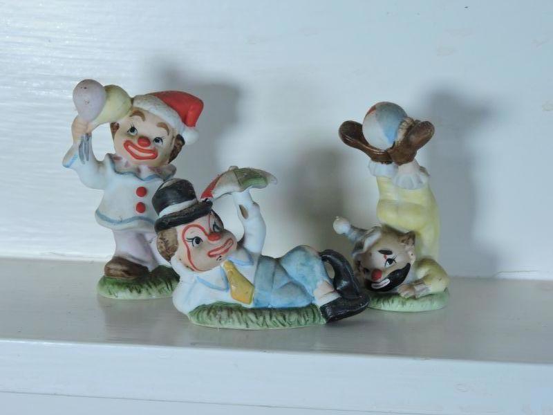 Three clowns by Fenton, no chips. Please read Terms and Conditions before placing a bid. Pick up is Saturday, November 30 from 9am to 3 pm in Bridgeton, NJ. All sales are final. All sales are as is, where is. Please review all photos. Any props included in photos are not included in listing. All measurements are approximate.