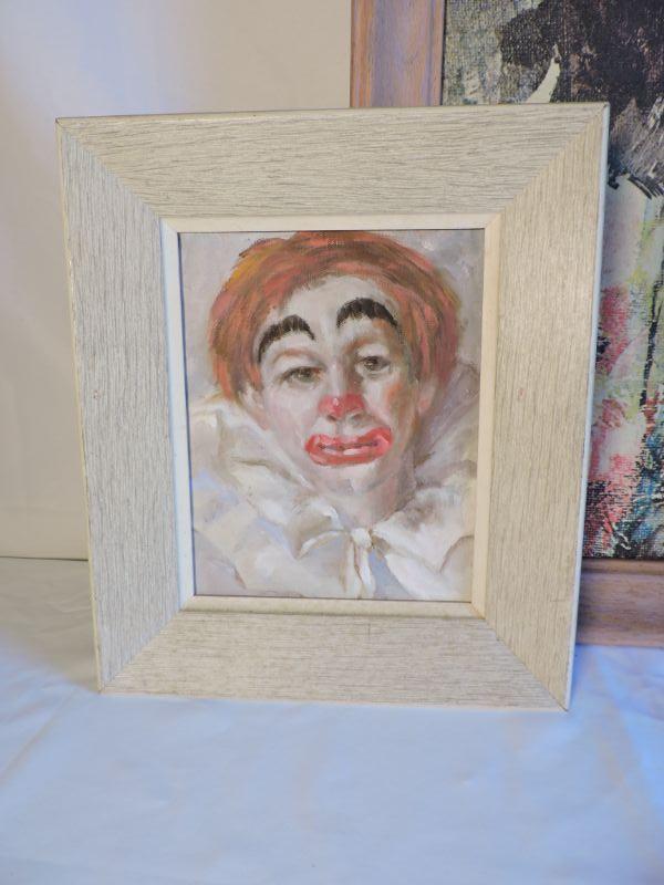 Two unsigned, framed clown paintings. Please read Terms and Conditions before placing a bid. Pick up is Saturday, November 30 from 9am to 3 pm in Bridgeton, NJ. All sales are final. All sales are as is, where is. Please review all photos. Any props included in photos are not included in listing. All measurements are approximate.