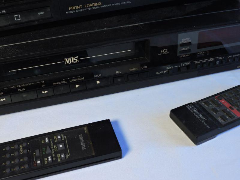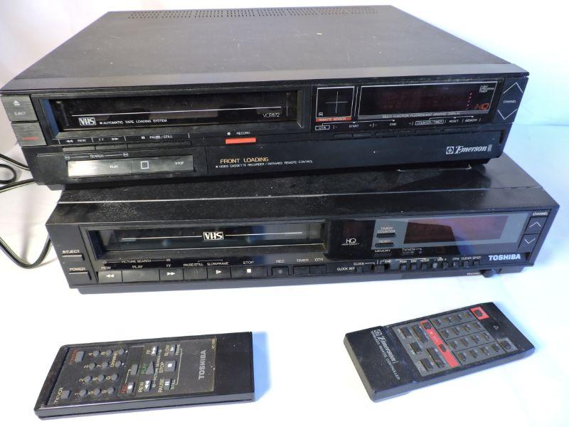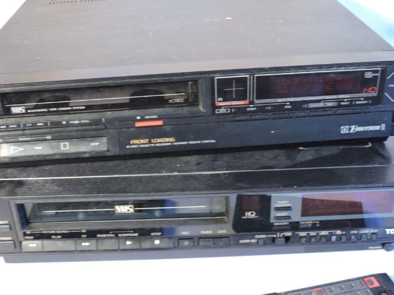 Emerson DVD player and a Toshiba VCR, untested. Please read Terms and Conditions before placing a bid. Pick up is Saturday, November 30 from 9am to 3 pm in Bridgeton, NJ. All sales are final. All sales are as is, where is. Please review all photos. Any props included in photos are not included in listing. All measurements are approximate.