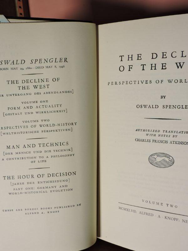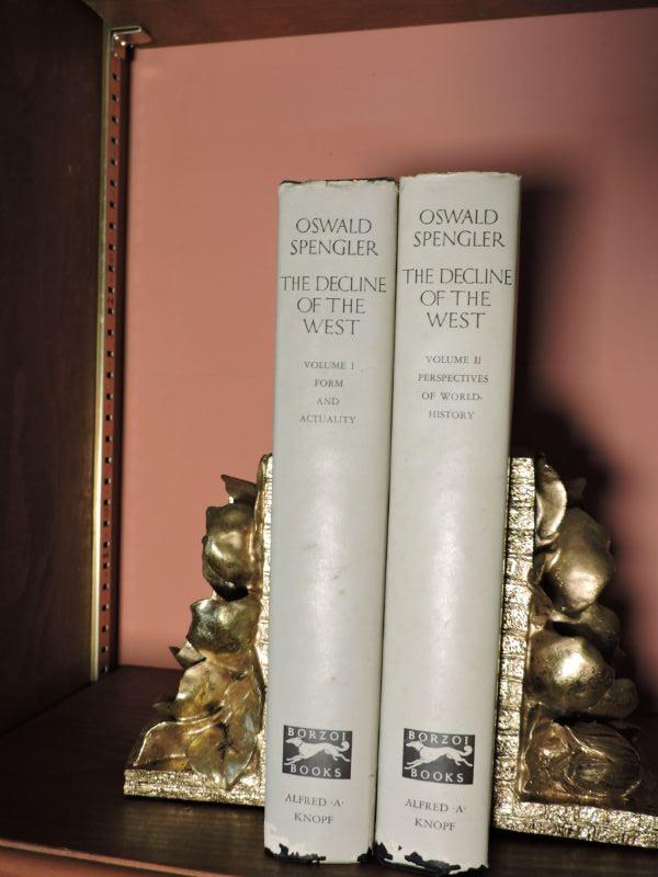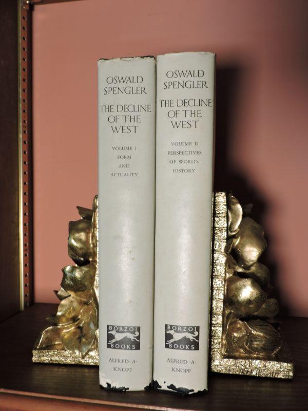 Two volume set , The Decline of the West. Includes bookends. Please read Terms and Conditions before placing a bid. Pick up is Saturday, November 30 from 9am to 3 pm in Bridgeton, NJ. All sales are final. All sales are as is, where is. Please review all photos. Any props included in photos are not included in listing. All measurements are approximate.