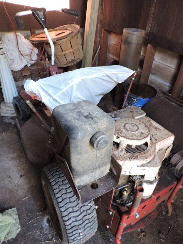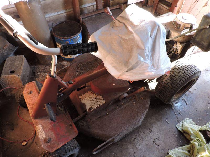 Vintage dixie chopper style mower. Untested. There appears to be a nest under the plastic bag - squirrel or mouse. We did not disturb it to take the photos. You will need to humanely move them Please read Terms and Conditions before placing a bid. Pick up is Saturday, November 30 from 9am to 3 pm in Bridgeton, NJ. All sales are final. All sales are as is, where is. Please review all photos. Any props included in photos are not included in listing. All measurements are approximate.