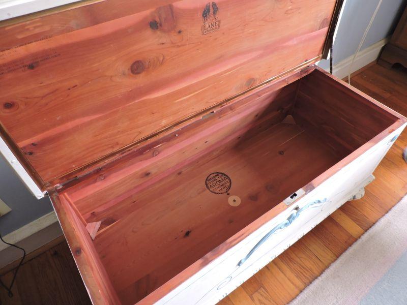 Vintage Lane chest. Lock may not meet current safety standards. Lane will send you new lock upon request. Please read Terms and Conditions before placing a bid. Pick up is Saturday, November 30 from 9am to 3 pm in Bridgeton, NJ. All sales are final. All sales are as is, where is. Please review all photos. Any props included in photos are not included in listing. All measurements are approximate.