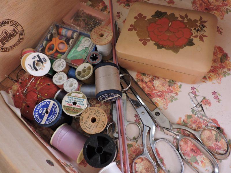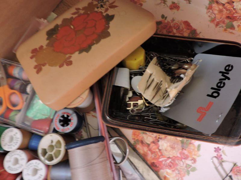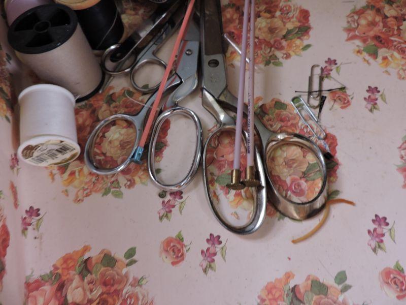 Scissors, threads, and more. Please read Terms and Conditions before placing a bid. Pick up is Saturday, November 30 from 9am to 3 pm in Bridgeton, NJ. All sales are final. All sales are as is, where is. Please review all photos. Any props included in photos are not included in listing. All measurements are approximate.