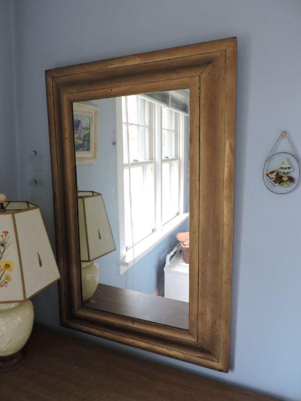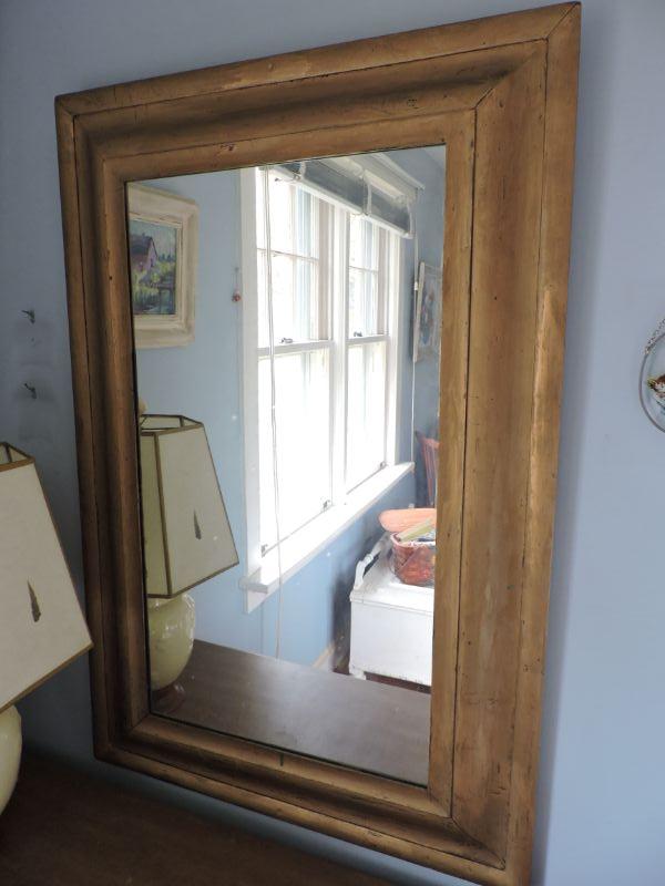 Nice wooden framed mirror. Please read Terms and Conditions before placing a bid. Pick up is Saturday, November 30 from 9am to 3 pm in Bridgeton, NJ. All sales are final. All sales are as is, where is. Please review all photos. Any props included in photos are not included in listing. All measurements are approximate.