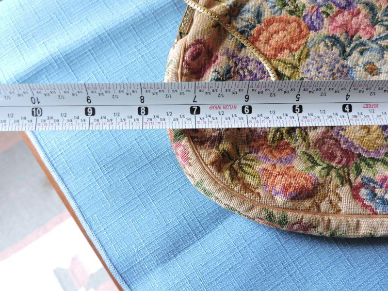 Tapestry purse with metal chain handle. Please read Terms and Conditions before placing a bid. Pick up is Saturday, November 30 from 9am to 3 pm in Bridgeton, NJ. All sales are final. All sales are as is, where is. Please review all photos. Any props included in photos are not included in listing. All measurements are approximate.