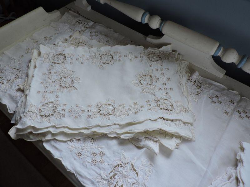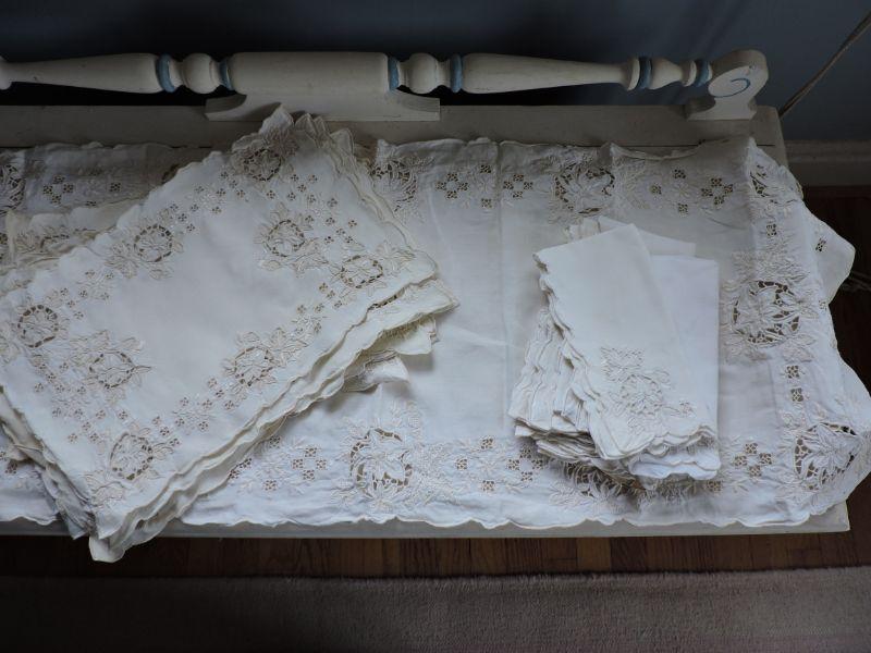 Napkins, place mats and table runners Please read Terms and Conditions before placing a bid. Pick up is Saturday, November 30 from 9am to 3 pm in Bridgeton, NJ. All sales are final. All sales are as is, where is. Please review all photos. Any props included in photos are not included in listing. All measurements are approximate.