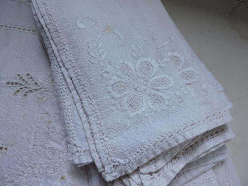 Napkins and place mats. Some stains. Please read Terms and Conditions before placing a bid. Pick up is Saturday, November 30 from 9am to 3 pm in Bridgeton, NJ. All sales are final. All sales are as is, where is. Please review all photos. Any props included in photos are not included in listing. All measurements are approximate.