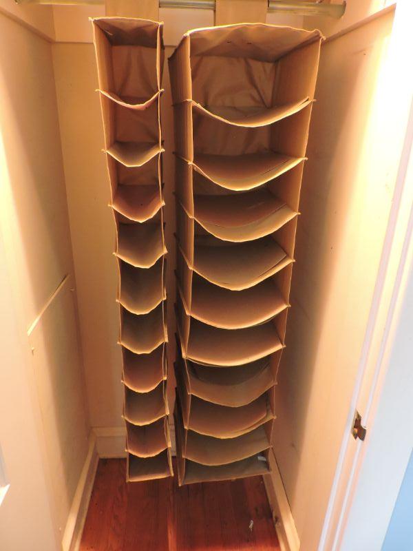 Hang in your closet to keep more shoes in less space. Also a hanging rack for sweaters, jeans or whatever. Please read Terms and Conditions before placing a bid. Pick up is Saturday, November 30 from 9am to 3 pm in Bridgeton, NJ. All sales are final. All sales are as is, where is. Please review all photos. Any props included in photos are not included in listing. All measurements are approximate.